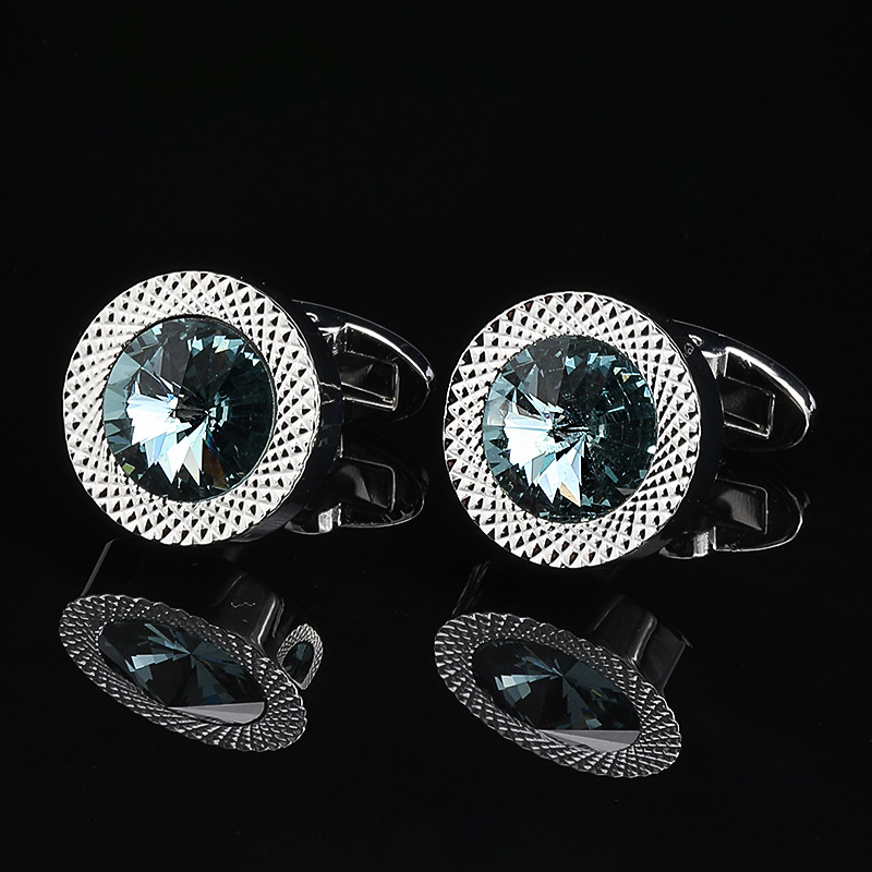 • 실버 클리어 블루 크리스탈 커프링크스 [선물박스]