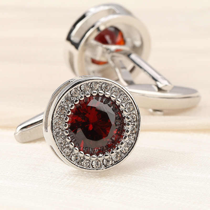• 리치 레드 크리스탈 커프스 단추 [선물 상자]