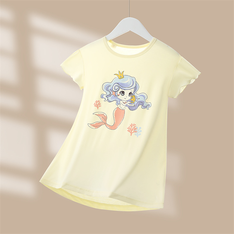 여아 잠옷 어린이 여름 얇은 반팔 잠옷 공주 바람 인터넷 연예인 큰 어린이 가정복 모달 에어컨 의류스토어 가기