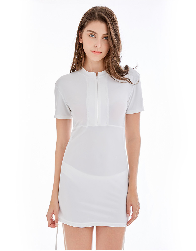 유럽과 미국 스타일의 섹시한 여성용 투피스 수영복, 중간 길이의 반팔 자외선 차단 수영복, 패셔너블한 스포츠 온천 수영복 투피스 세트