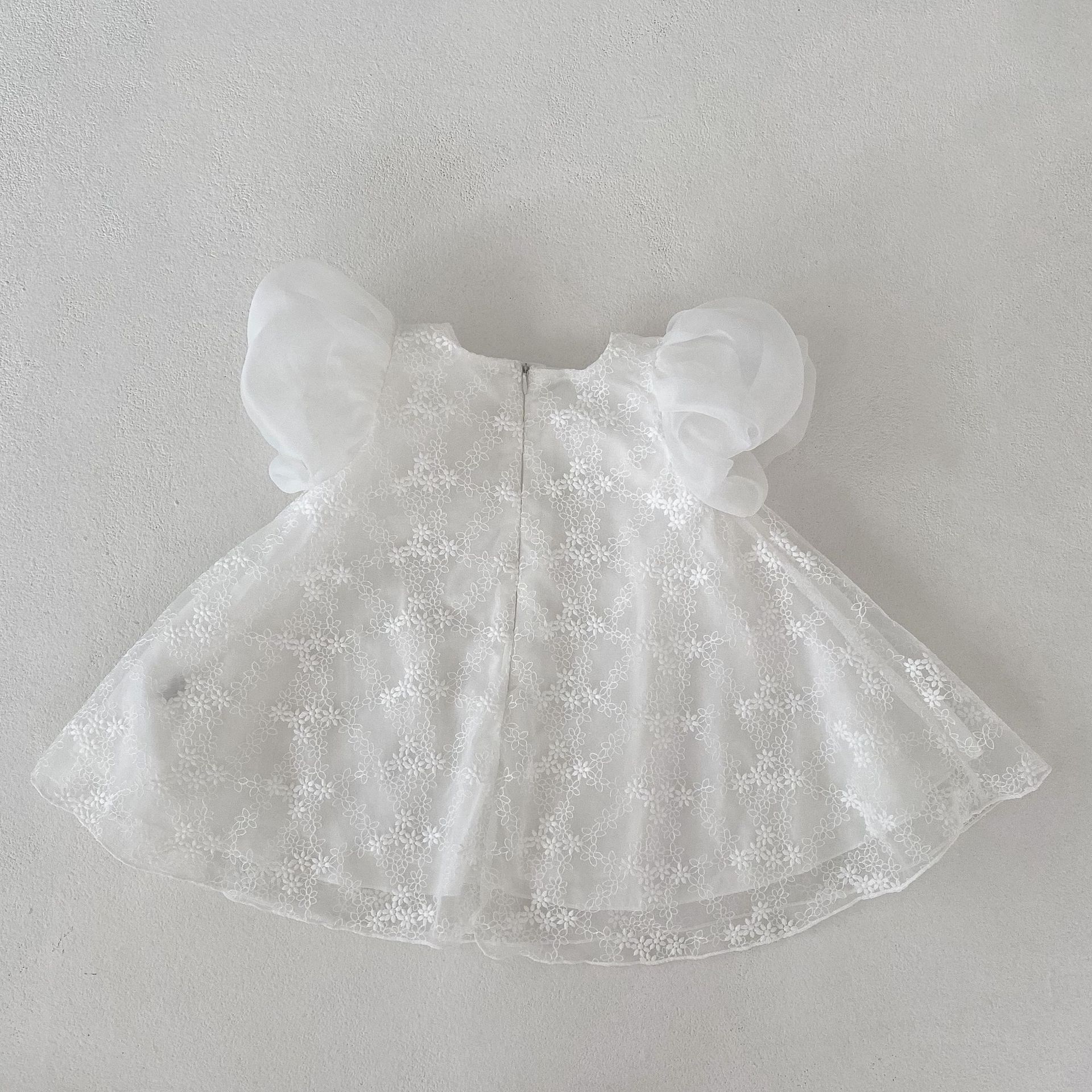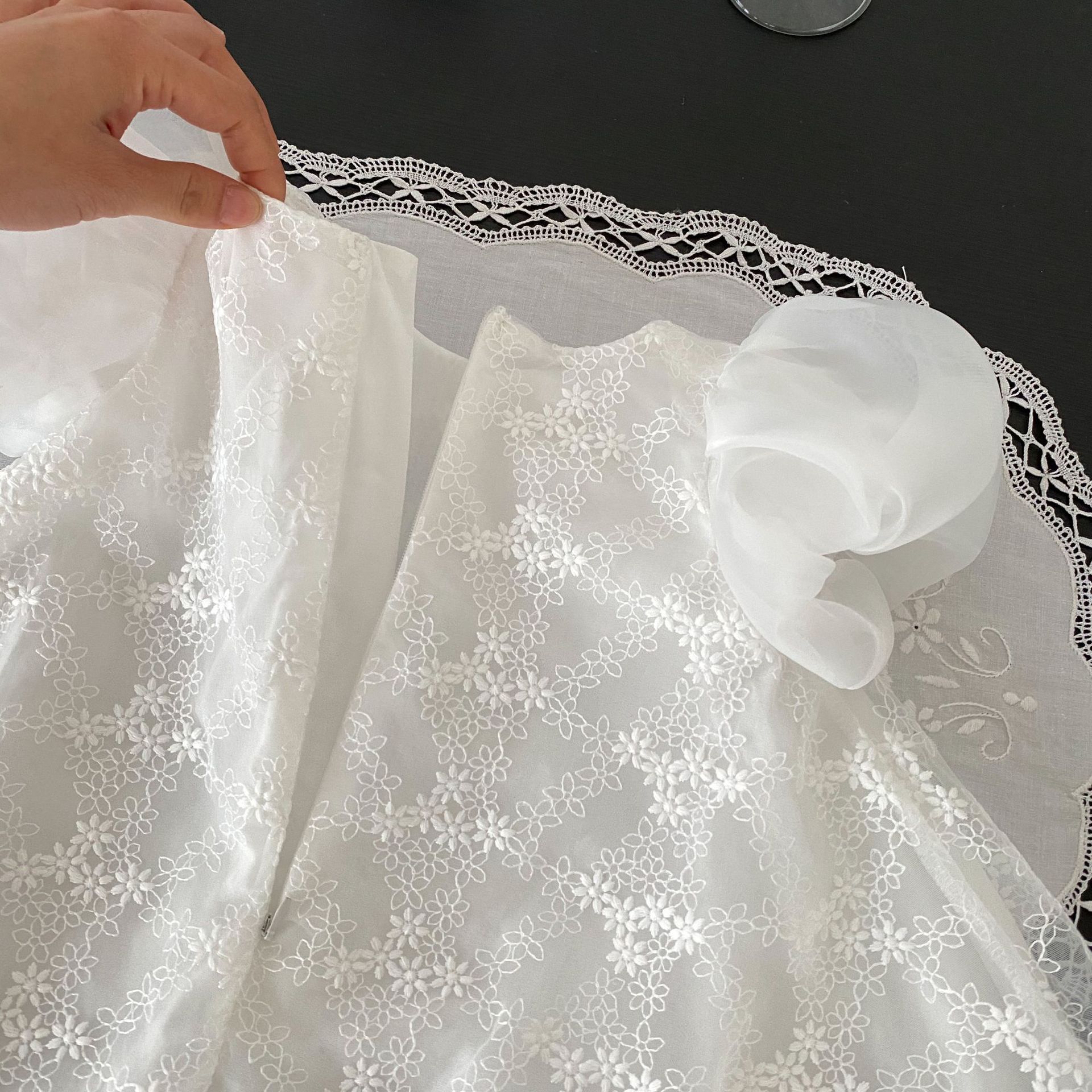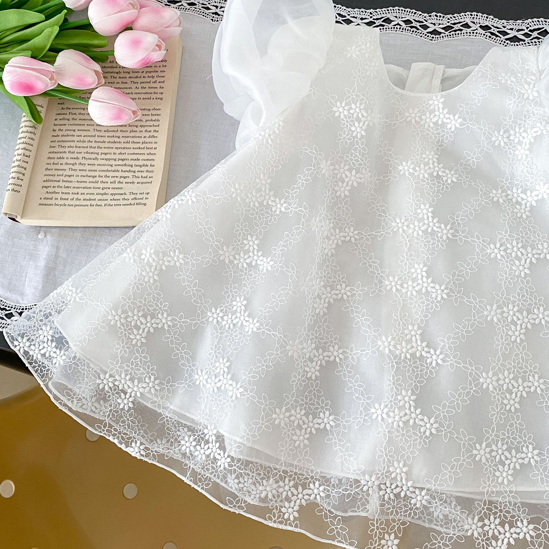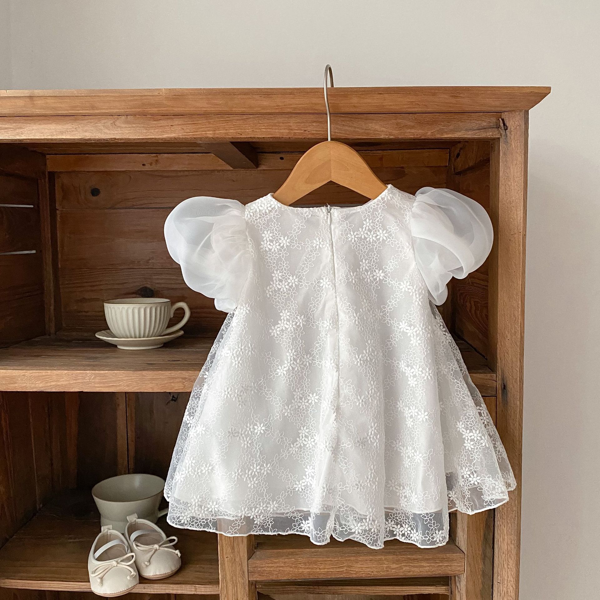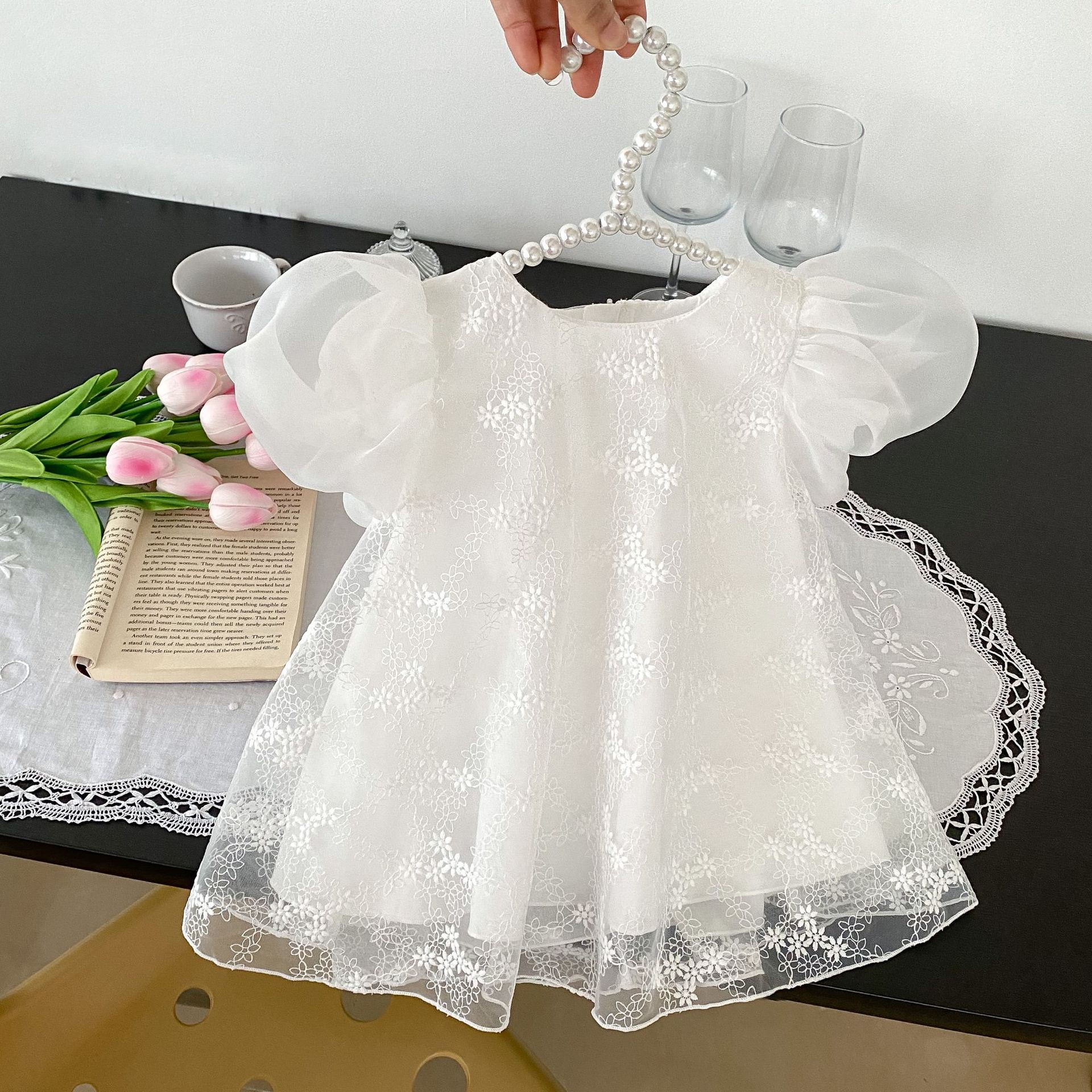 여름 소녀 아기 0-4 세 아기 공주 백일 연회 거품 짧은 소매 면 레이스 스커트