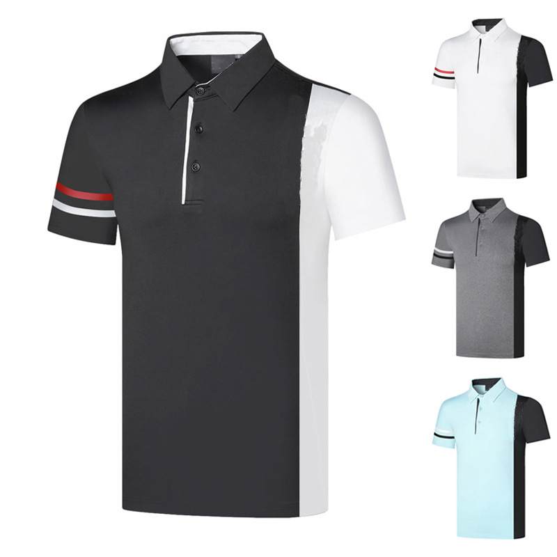 2024년 해외 인기 골프웨어 남성용 시원하고 통기성 좋은 속건 반팔 티셔츠 배색 캐주얼 폴로셔츠스토어 가기