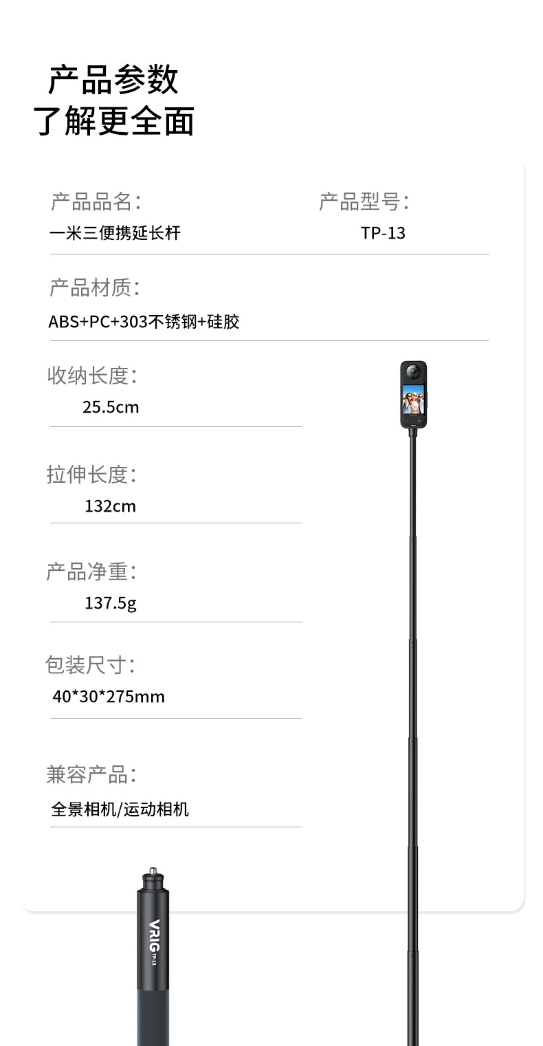 스포츠 카메라 셀카봉 TP-13 insta360 one RS/X3 스텔스 연장봉 스포츠 카메라