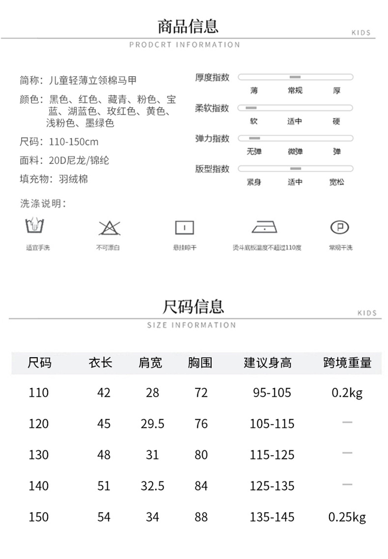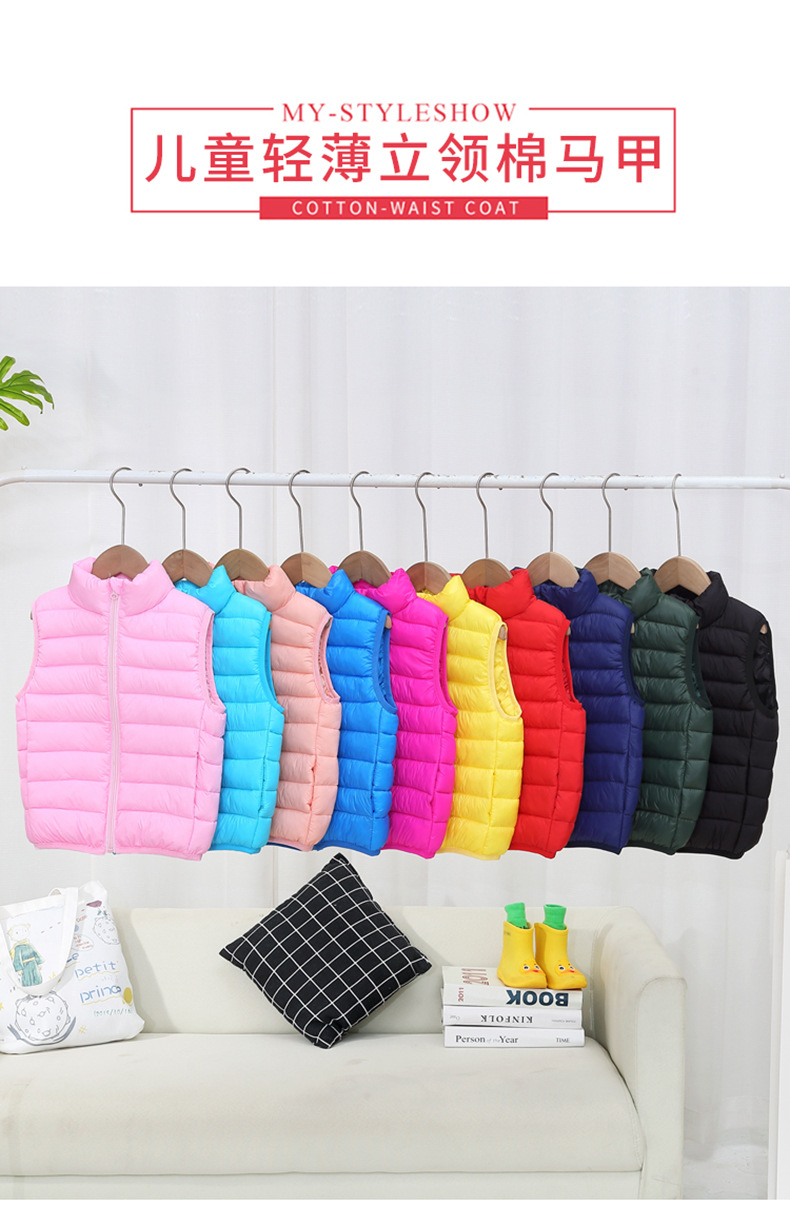어린이 다운 면 조끼 남아 및 여아 아기 중년 어린이 가을과 겨울 어깨 겨울 의류 어린이 겉옷 가볍고 얇은 조끼