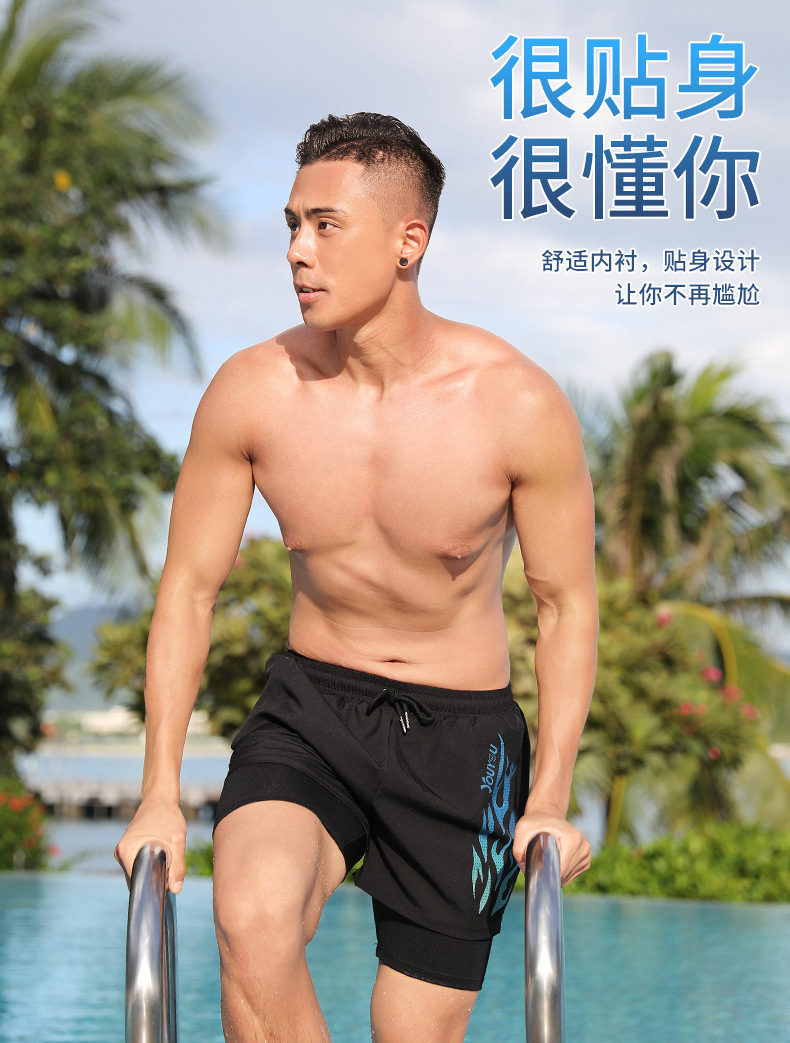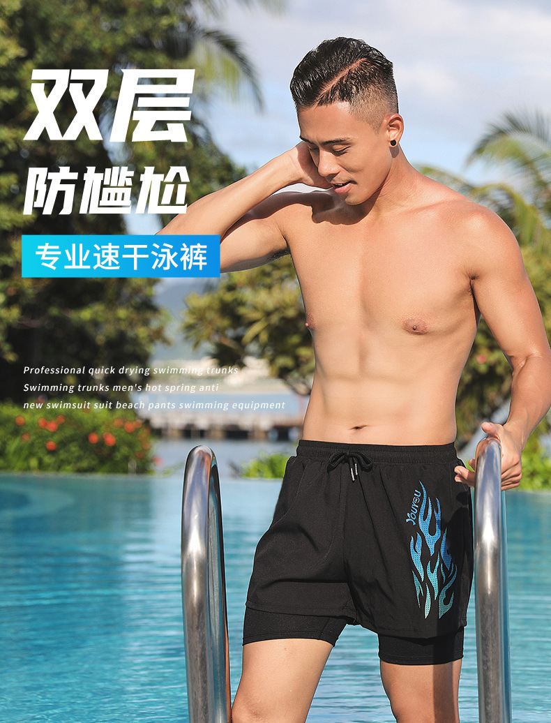 수영 트렁크 남자의 가짜 두 조각 화재 수영 트렁크 잘 생긴 플러스 사이즈 플러스 비료 플러스 빠른 건조 방지 당황 수영장 해변 복서스토어 가기