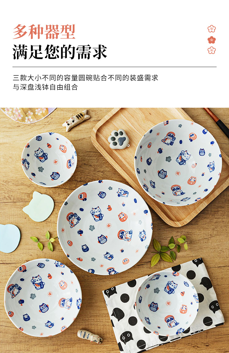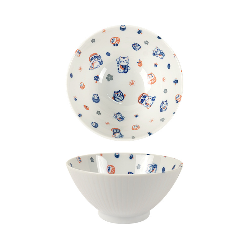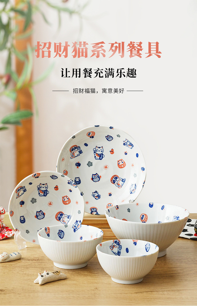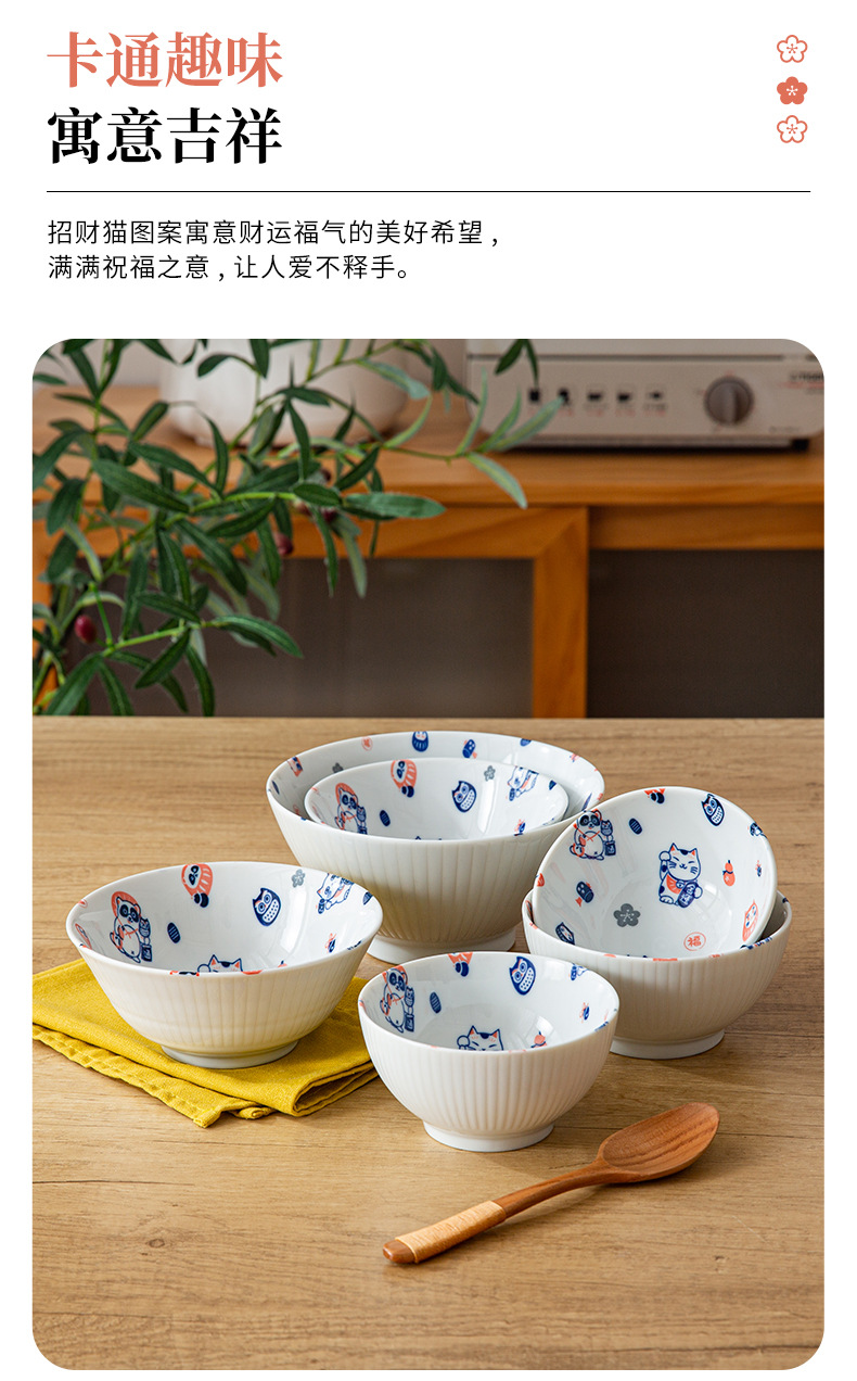 일본 수입 도자기 그릇 럭키 고양이 시리즈 밥그릇 수프 그릇 일본 식기 가정 라면 그릇 유약 색상스토어 가기