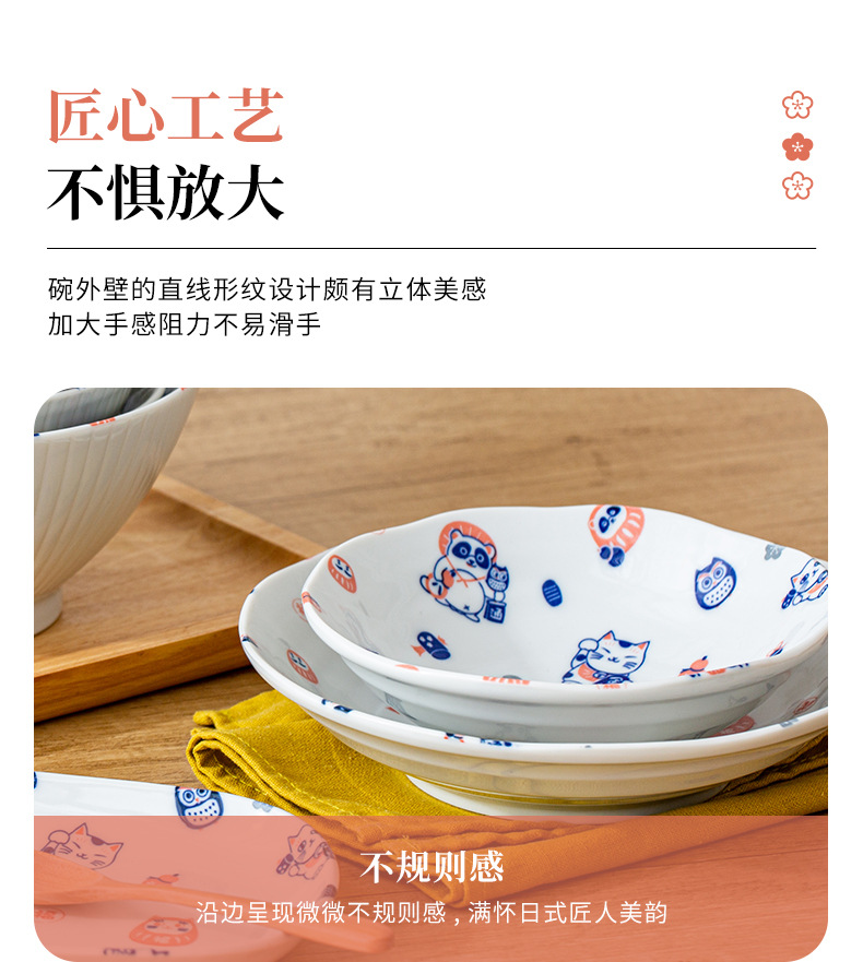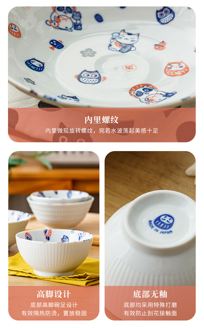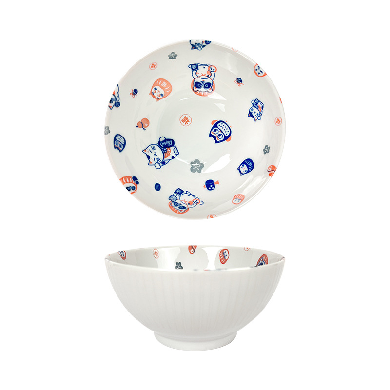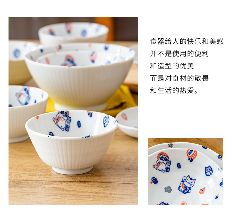 일본 수입 도자기 그릇 럭키 고양이 시리즈 밥그릇 수프 그릇 일본 식기 가정 라면 그릇 유약 색상스토어 가기