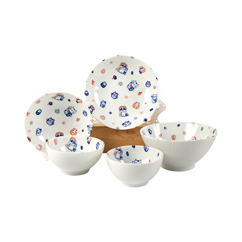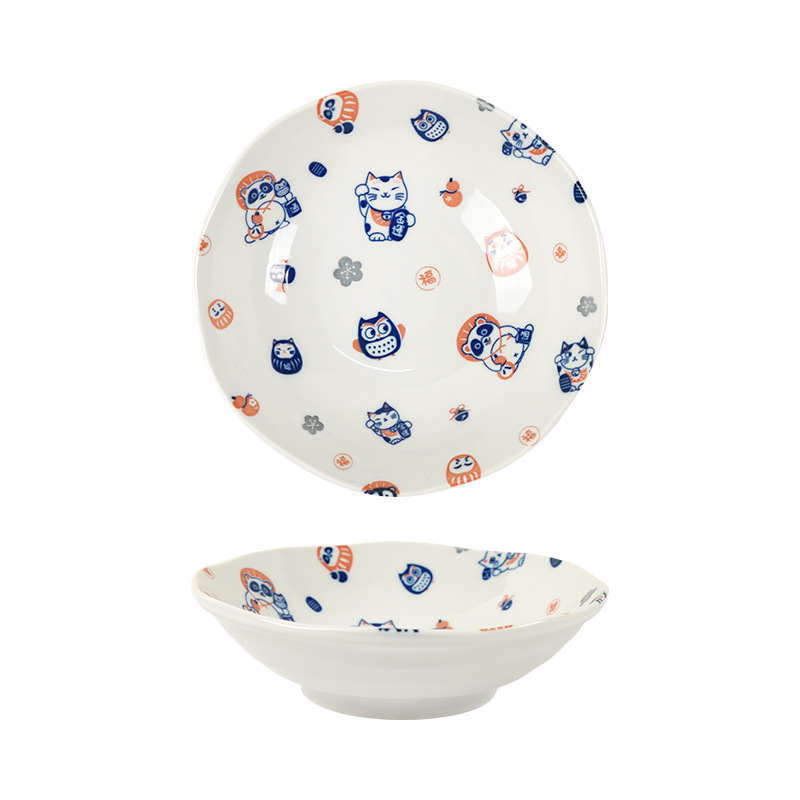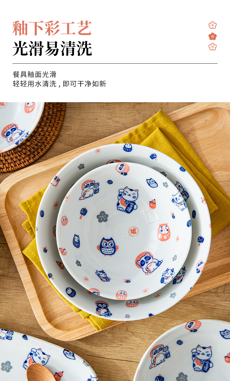 일본 수입 도자기 그릇 럭키 고양이 시리즈 밥그릇 수프 그릇 일본 식기 가정 라면 그릇 유약 색상