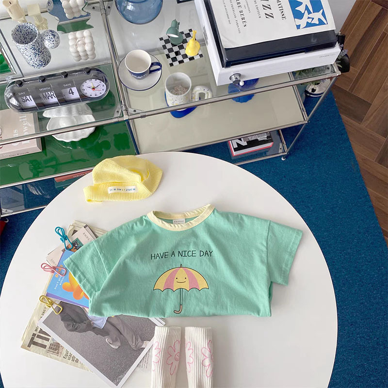 2023ins 한국 아동복 여름 멀티 컬러 어린이 아기 만화 탑 긴팔 캐주얼 티셔츠스토어 가기