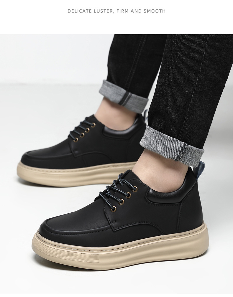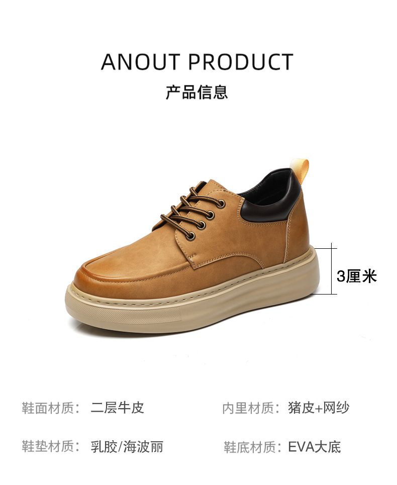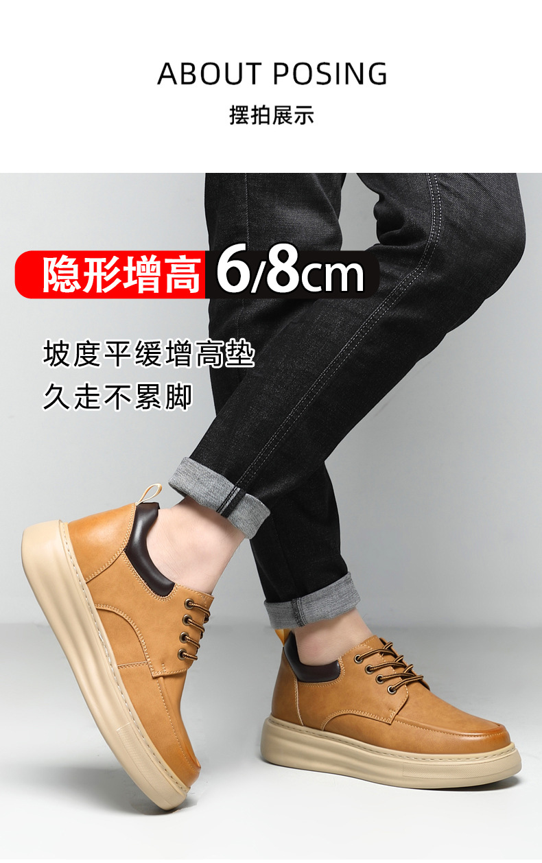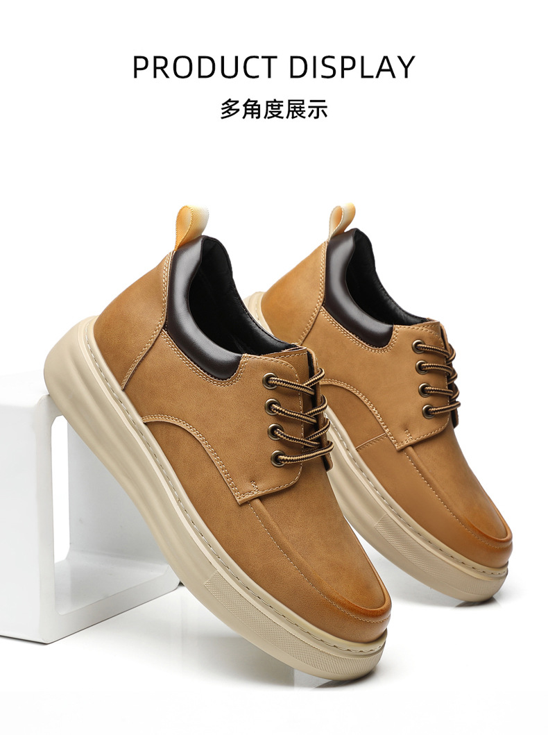 새로운 야외 캐주얼 작업복 신발 남성용 8cm 내부 높이 대형 발가락 가죽 신발 남성용 정품 가죽 미끄럼 방지 트렌디 신발스토어 가기