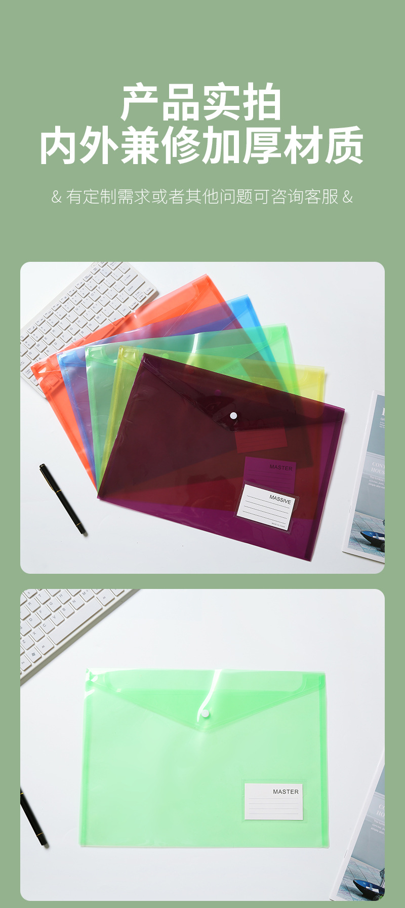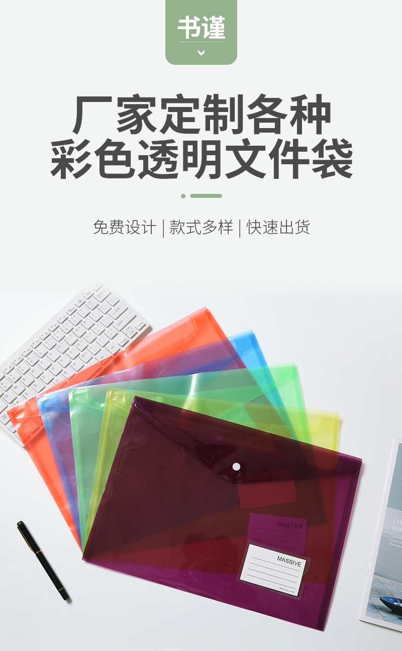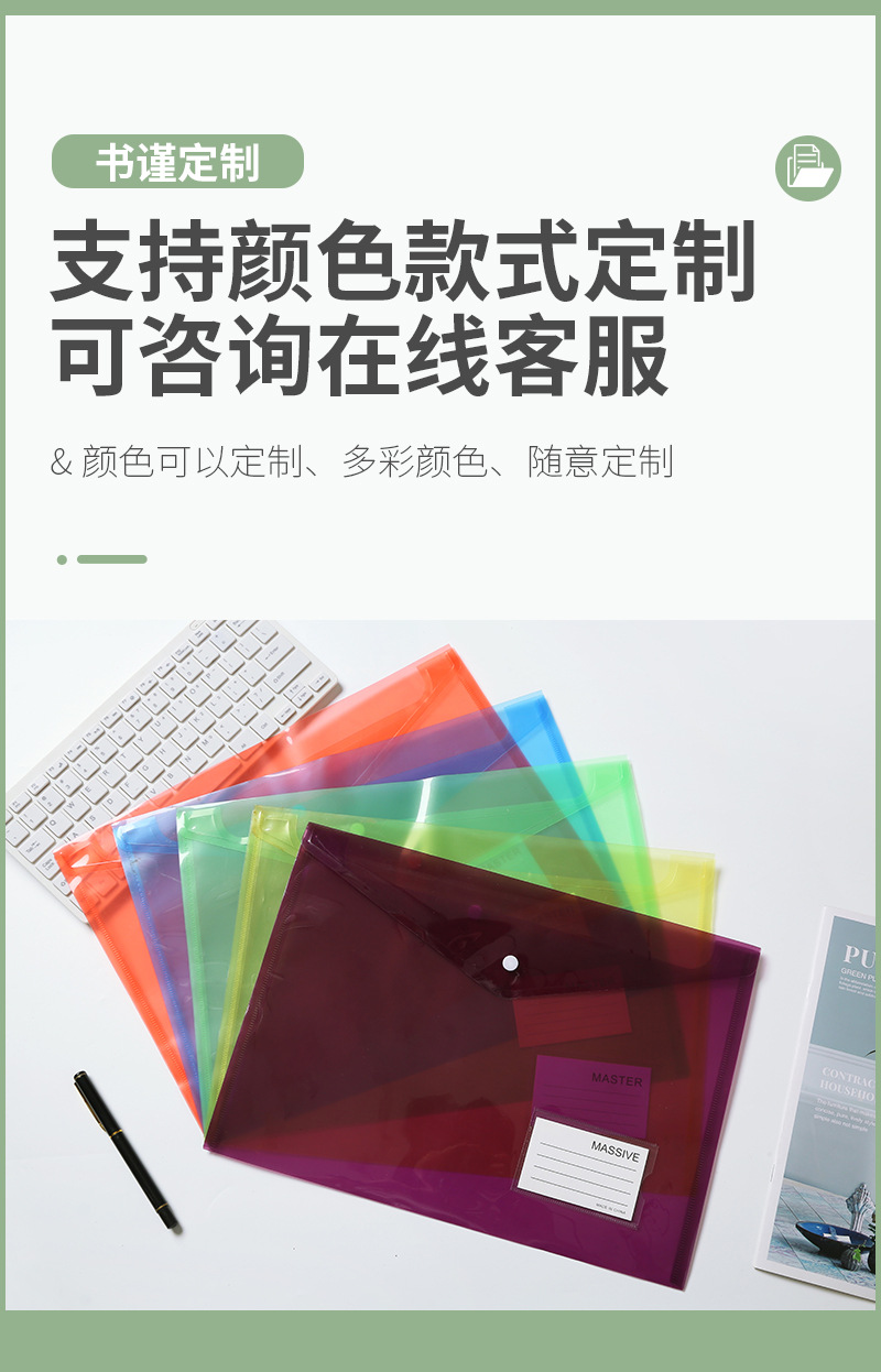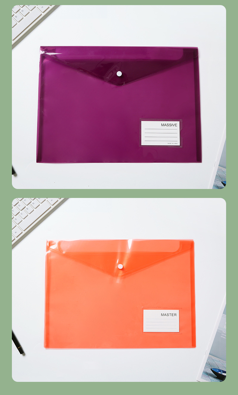수평 스냅 타입 컬러 a4 파일 가방 두꺼운 방수 사무실 보관 가방 PP 파일 폴더 도매스토어 가기