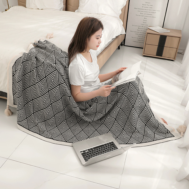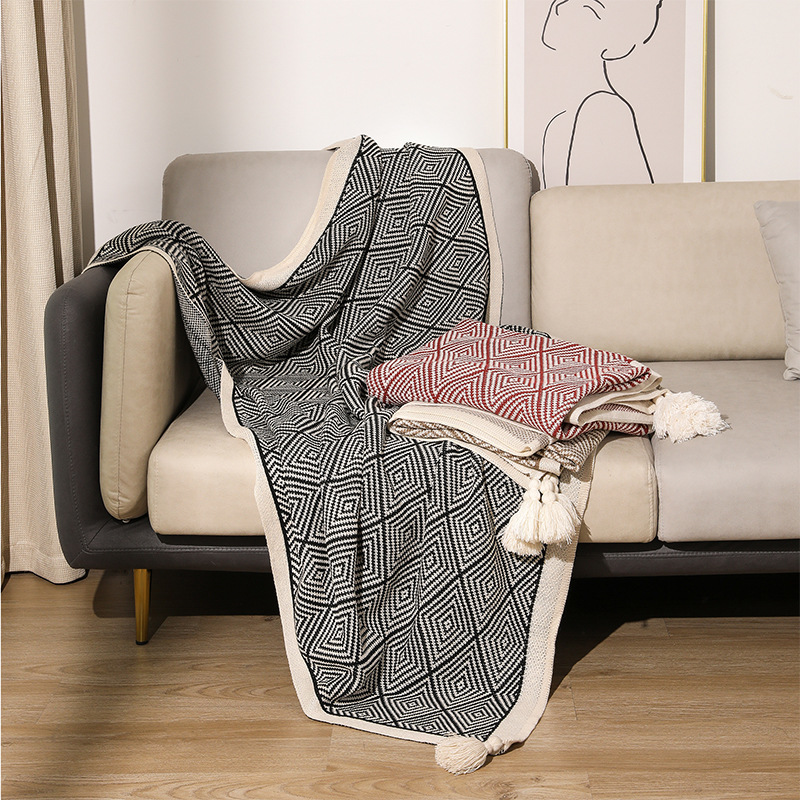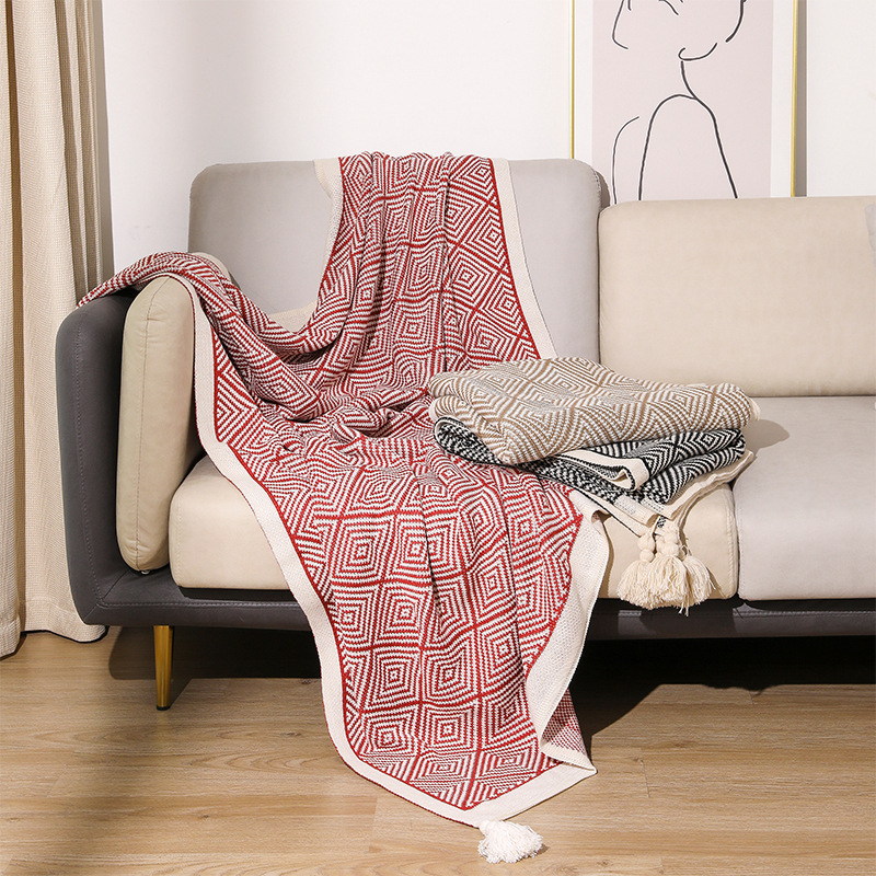 기하학적 니트 담요 소파 담요 싱글 낮잠 에어컨 담요 레트로 스타일 담요 숄 뜨개질 인스 스타일스토어 가기