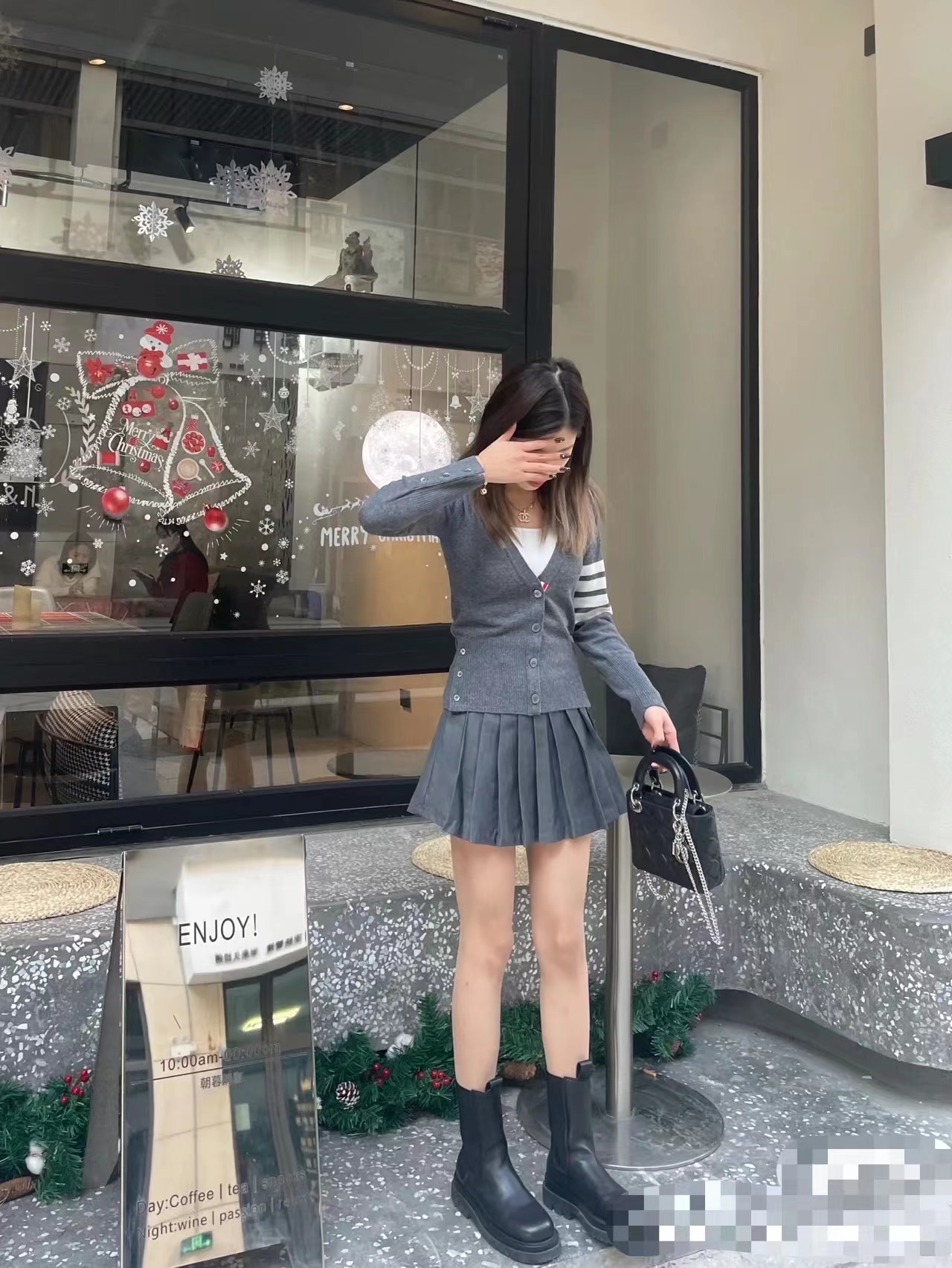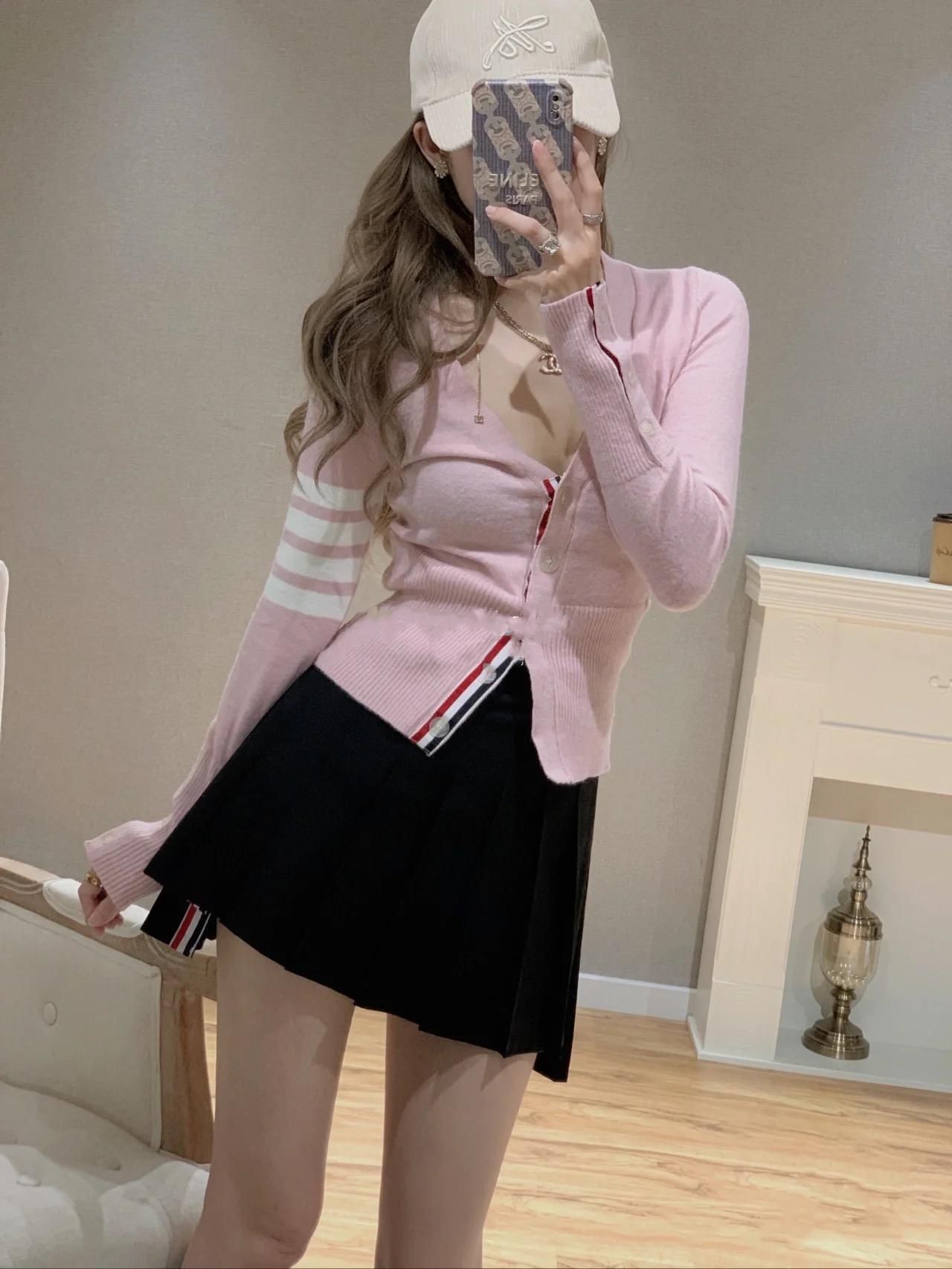 TB 여성 슬림 니트 가디건 탑 클래식 네 줄무늬 봄 가을 신상 네 버튼 고급 모조 울 가디건