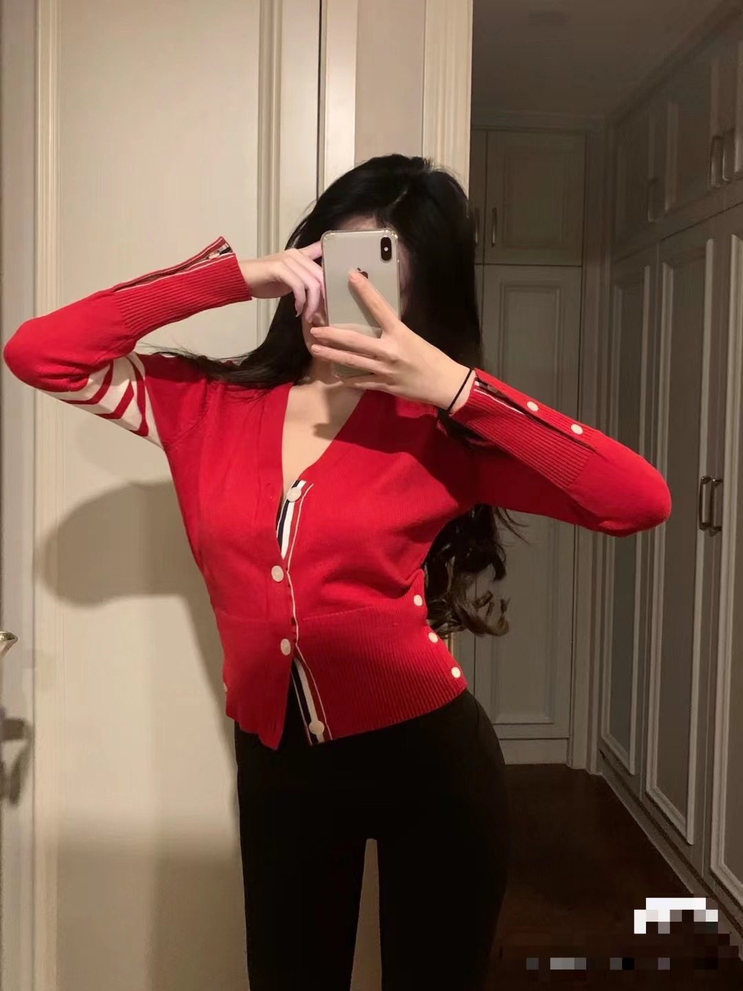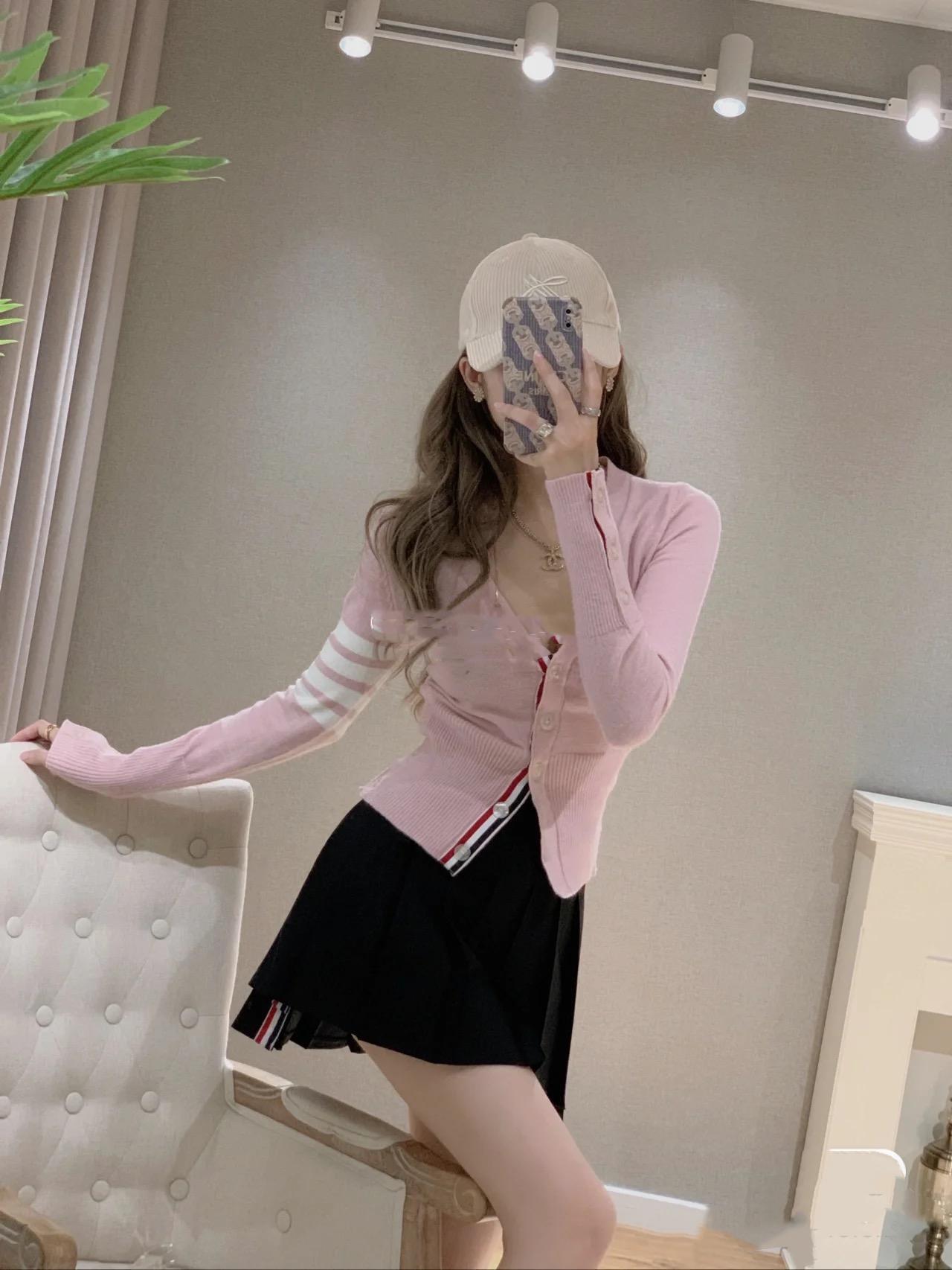 TB 여성 슬림 니트 가디건 탑 클래식 네 줄무늬 봄 가을 신상 네 버튼 고급 모조 울 가디건스토어 가기