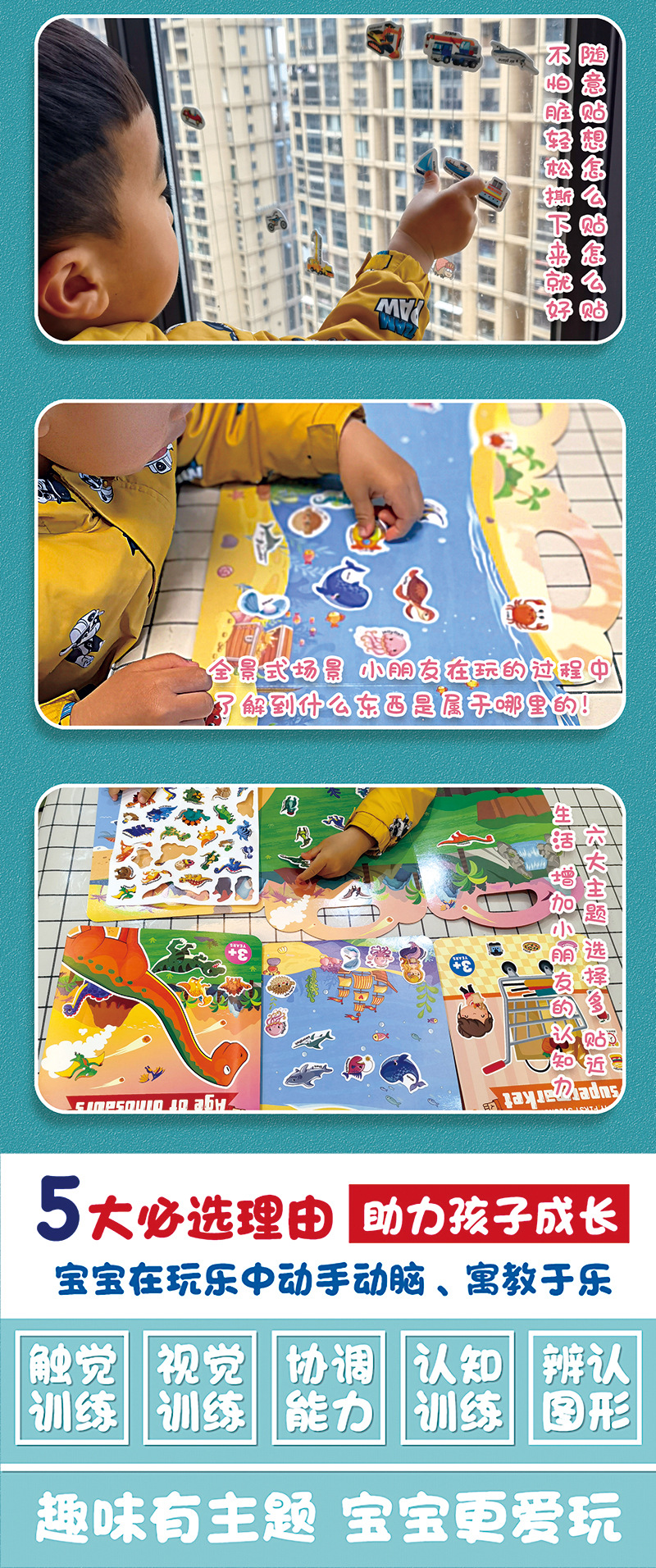 어린이 휴대용 젤리 스티커 책 4-6 세 반복적으로 붙여 넣기 국경 조기 교육 스티커 그림 교육 만화 장난감스토어 가기