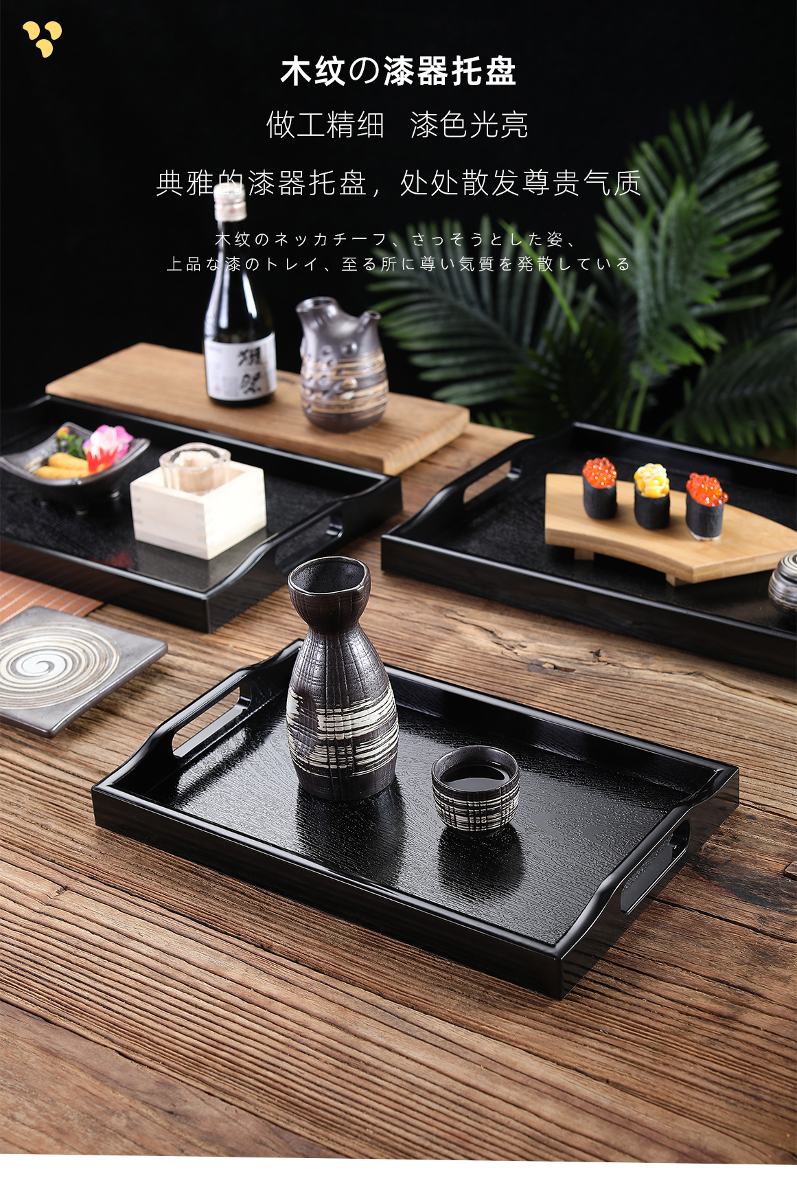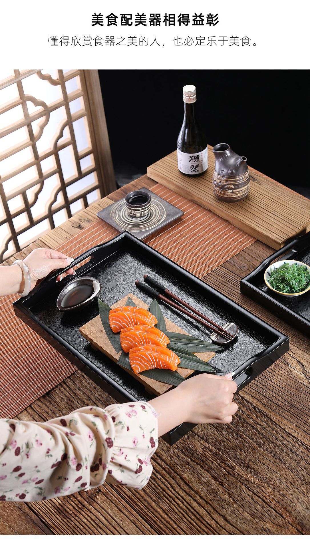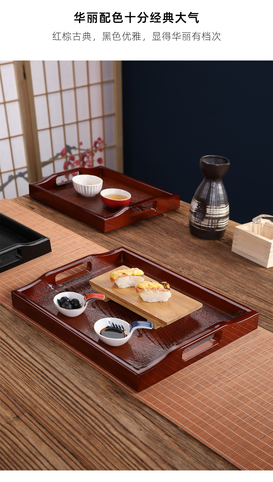 더블 소드 트레이 상업용 미끄럼 방지 직사각형 모조 우드 크리에이티브 티 트레이 디너 플레이트 호텔 레스토랑 가정용 대형 트레이