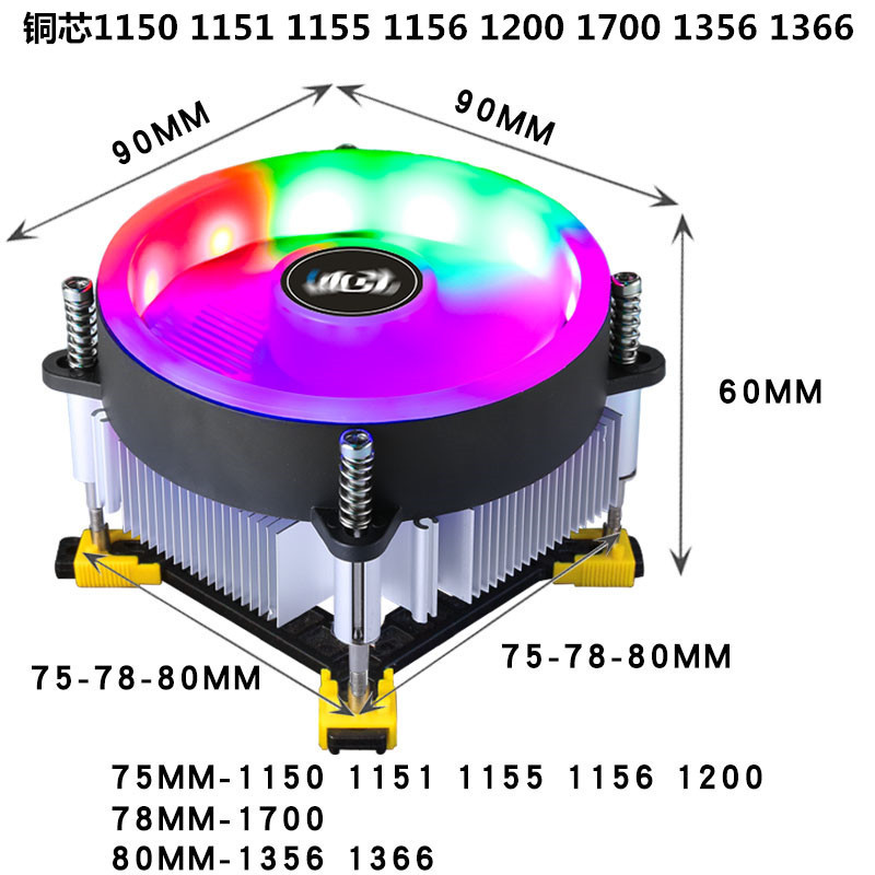 1700 CPU 쿨러 자동 데스크탑 컴퓨터 1155 1200 1356 1366 멀티 플랫폼 CPU 팬스토어 가기