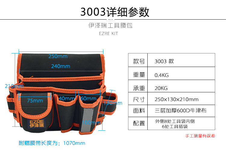 도구 허리 가방 전기 허리 가방 벽지 매달려 가방 다기능 캔버스 유지 보수 및 설치 두꺼운 대형 스몰 사이즈 전기 드릴