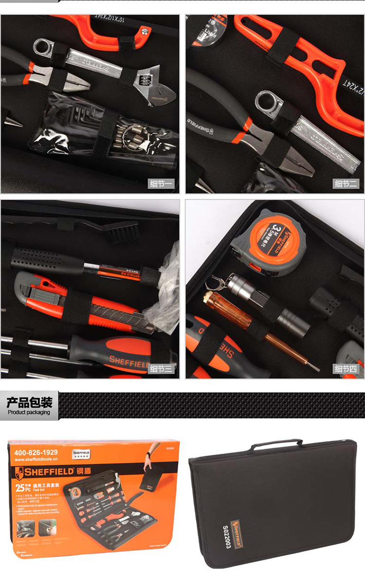 강철 방패 도구 25 조각 세트 일반 도구 세트 하드웨어 도구 세트 물 전기 유지 보수 도구 세트 가정용