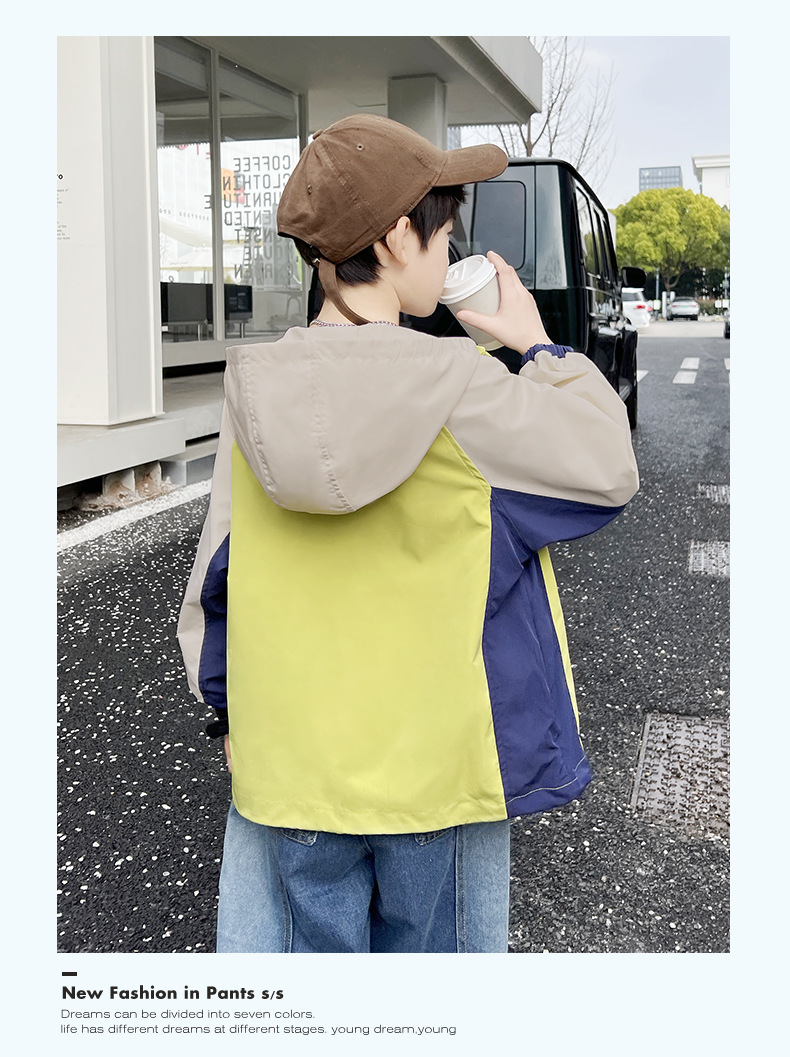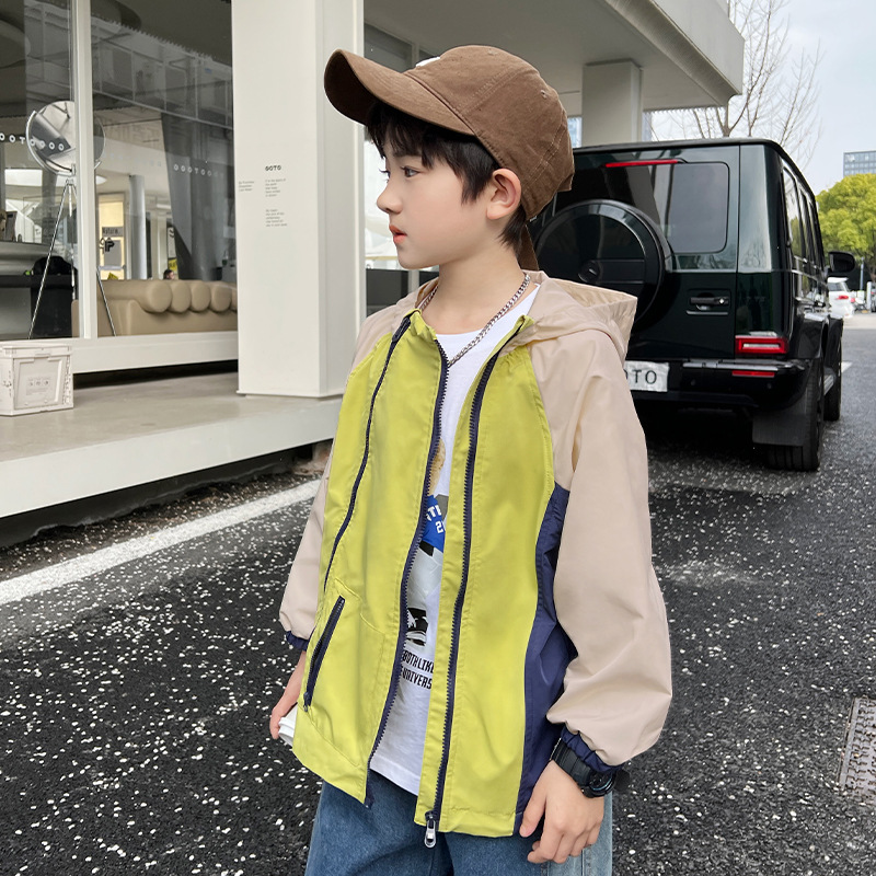 2024년 여름 신상 아동용 캐주얼 콘트라스트 컬러 후드 남아용 얇은 바람막이 중대형 아동복 유행 도매