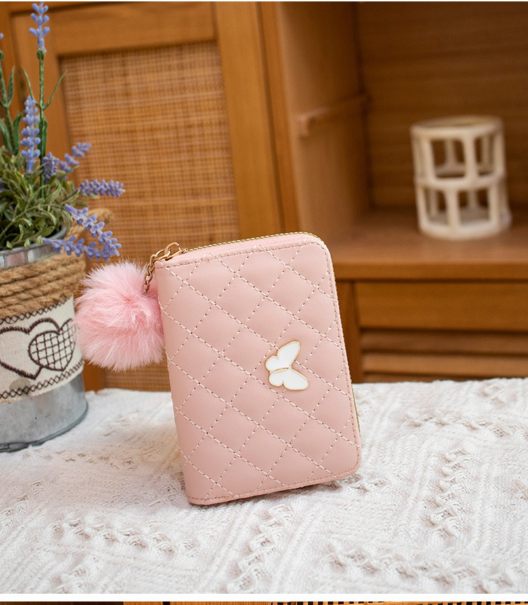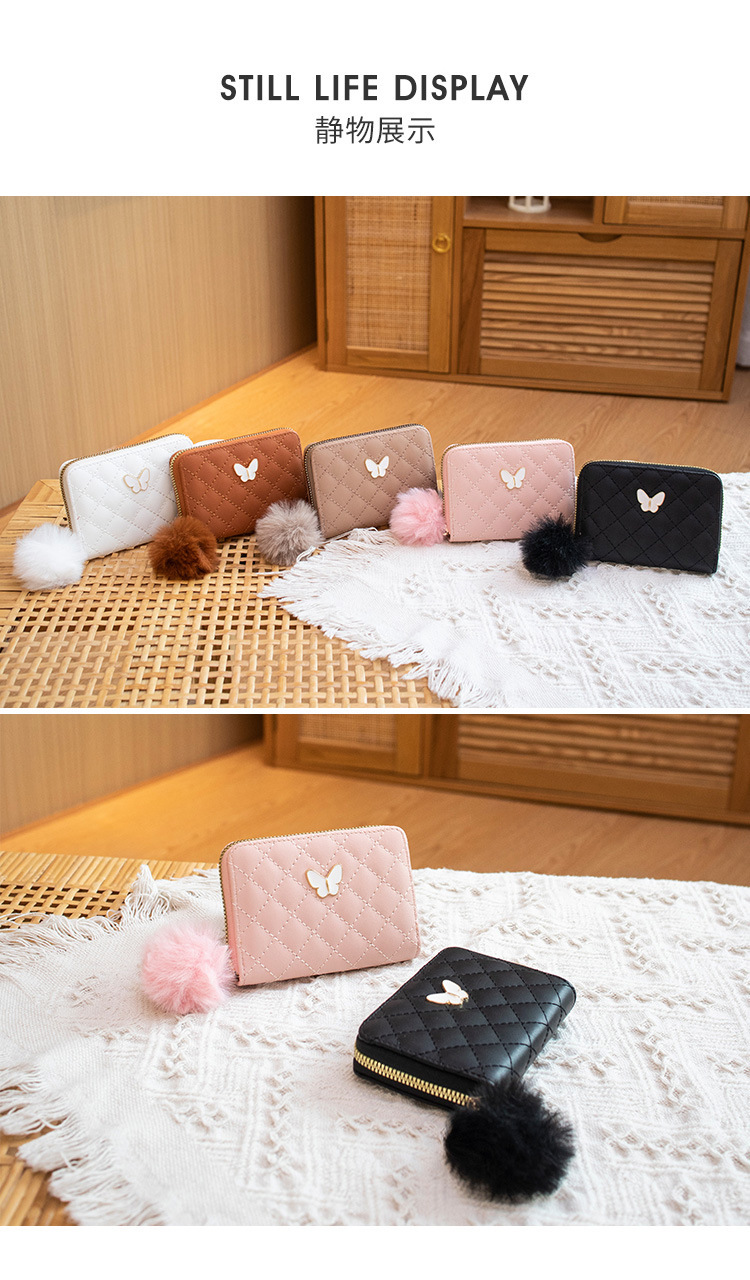 여성용 지갑 여성용 지갑 패션 나비 지갑 맞춤형 모피 볼 동전 지갑 대외 무역 국경스토어 가기