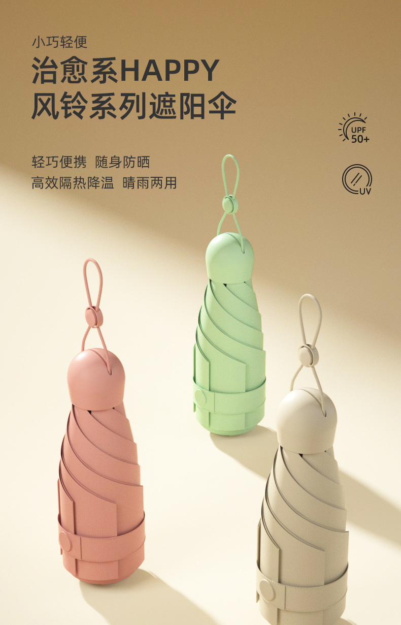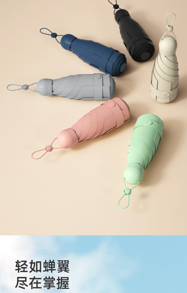 Baodini 초경량 태양 우산 자외선 차단제 자외선 차단 여성용 소형 휴대용 이중 목적 접이식 5 배 캡슐 우산스토어 가기