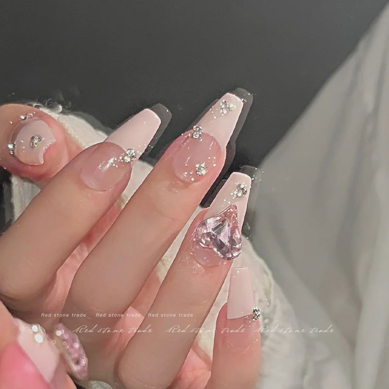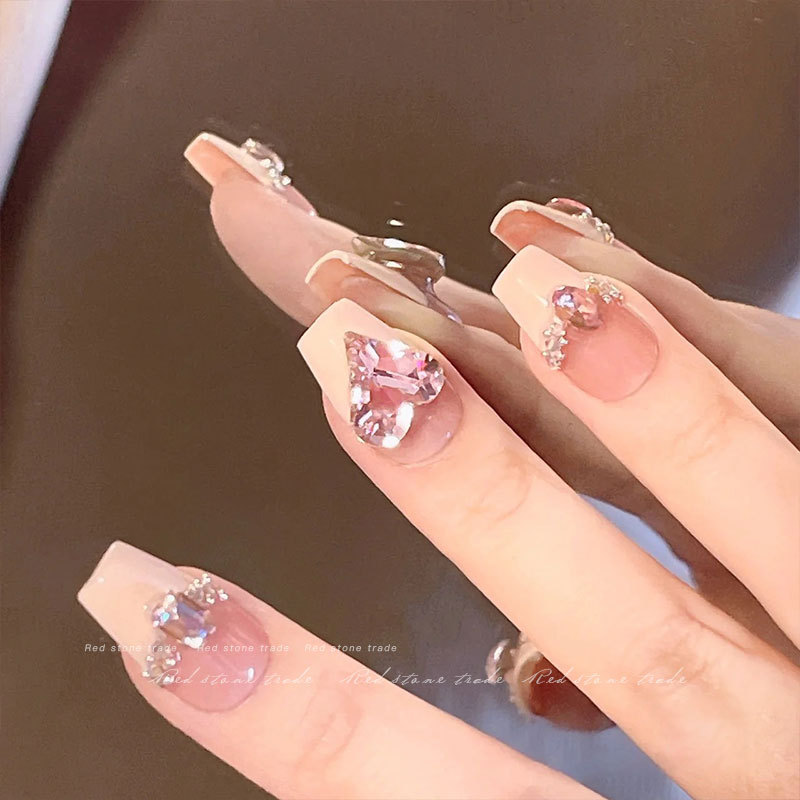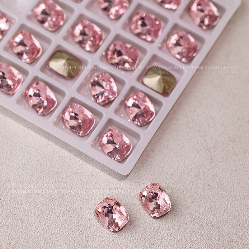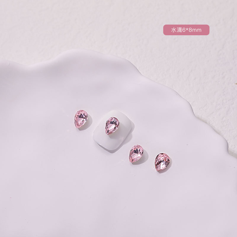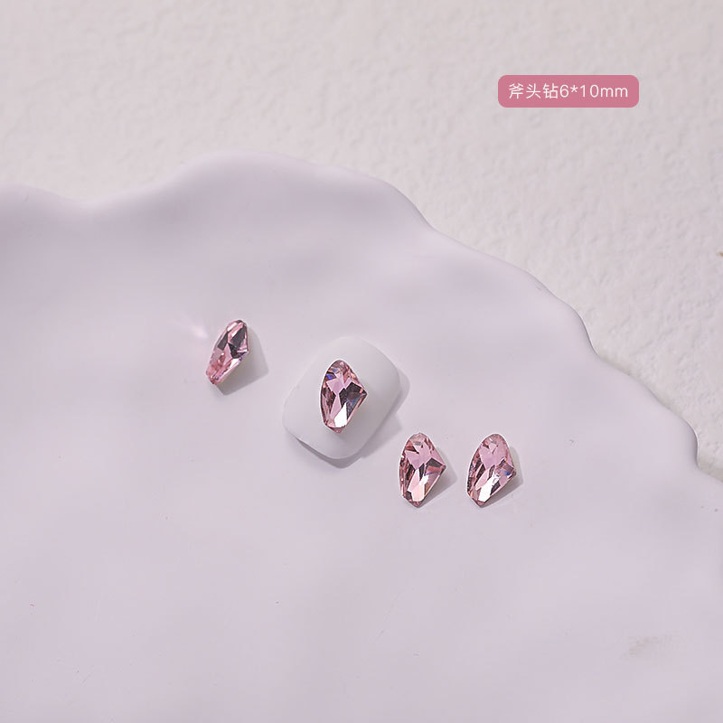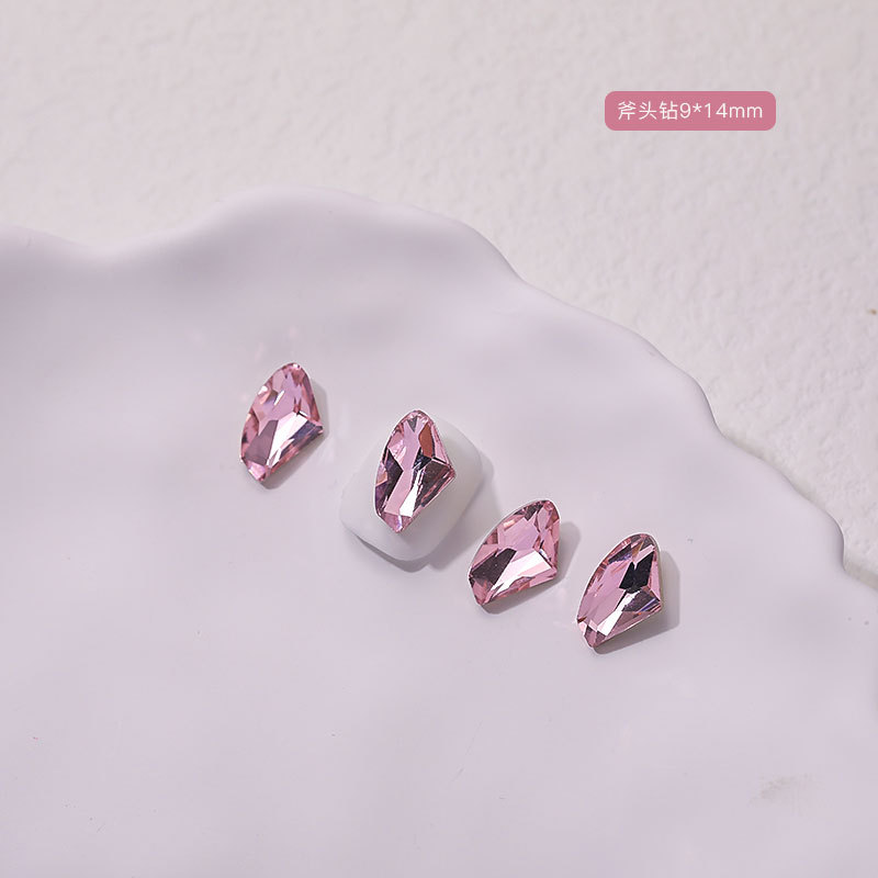 소녀의 핑크 네일 아트 뾰족한 모양의 다이아몬드 네일 액세서리 슈퍼 플래시 다각적 인 크리스탈 유리 다이아몬드 보석 도매