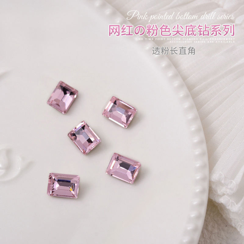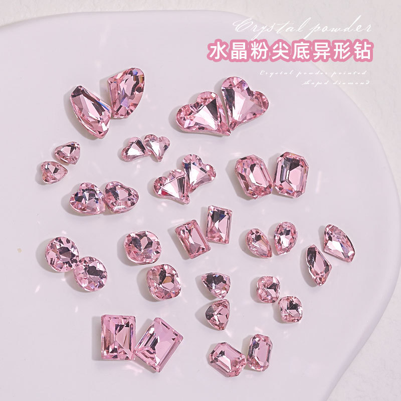 소녀의 핑크 네일 아트 뾰족한 모양의 다이아몬드 네일 액세서리 슈퍼 플래시 다각적 인 크리스탈 유리 다이아몬드 보석 도매스토어 가기