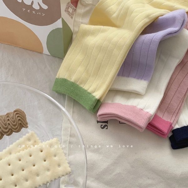달콤한 캔디 단색 스타일 양말 봄 가을 여름 대비 색상 일본식 귀여운 면 스택스토어 가기