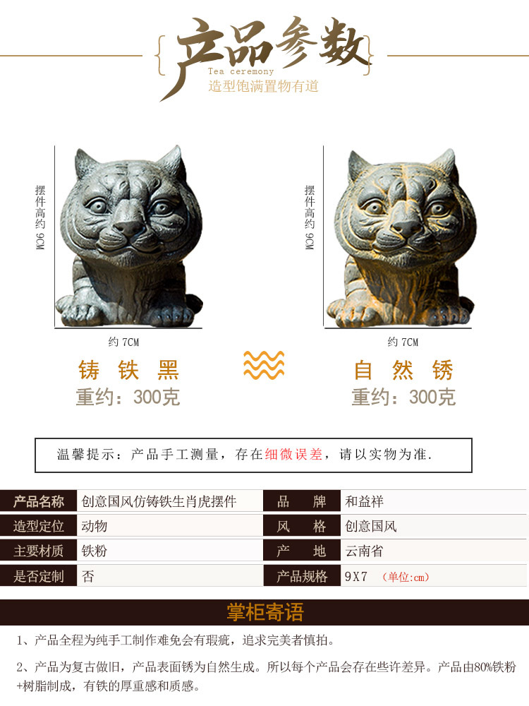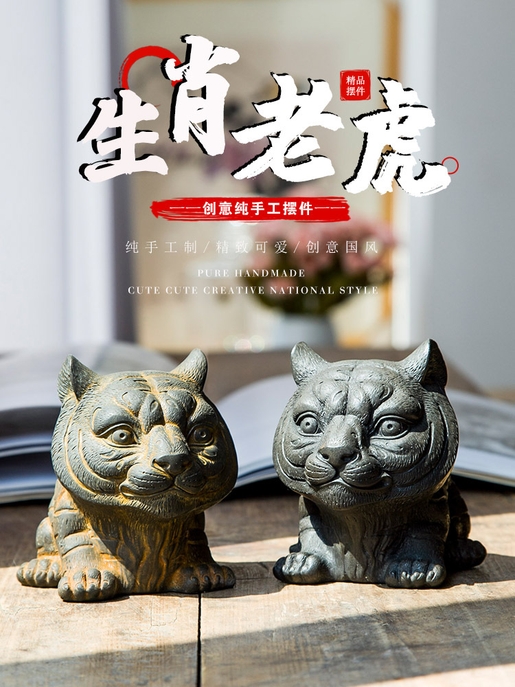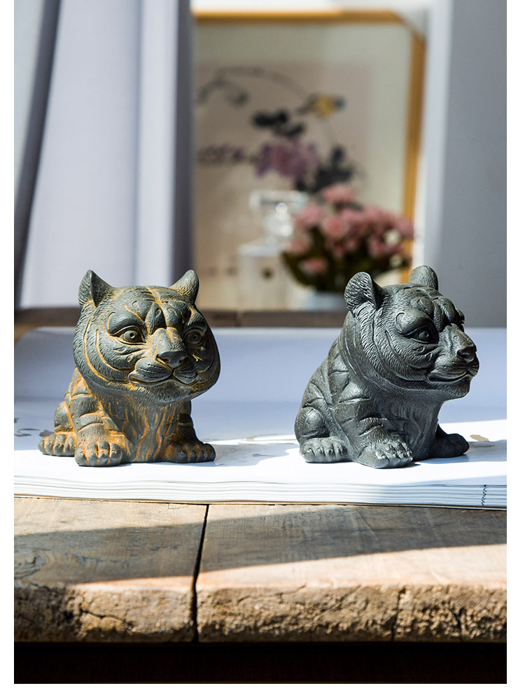 귀여운 호랑이 조각상 사무실 및 가정용 데스크탑 수제 조각품 주조 철제 장식품스토어 가기