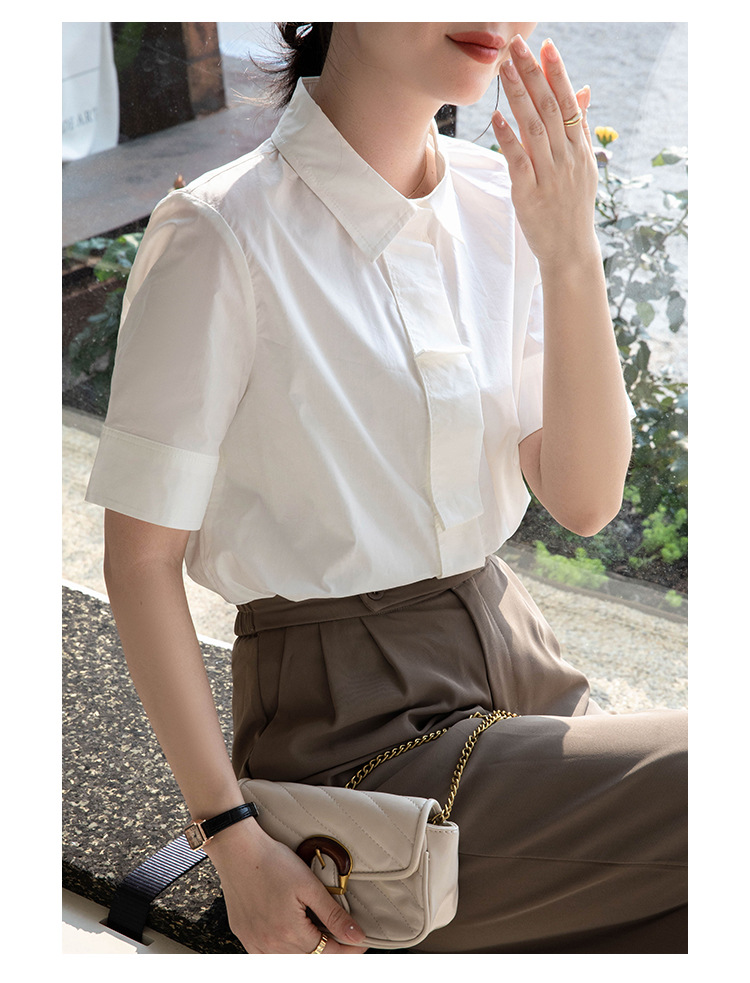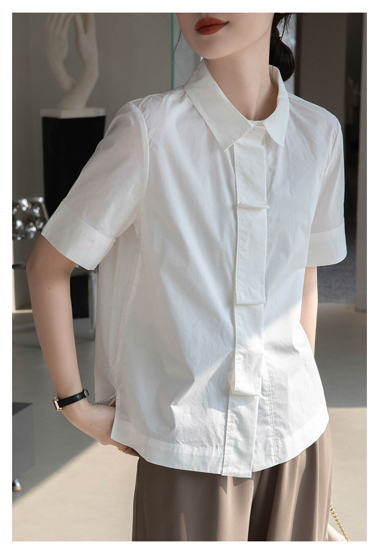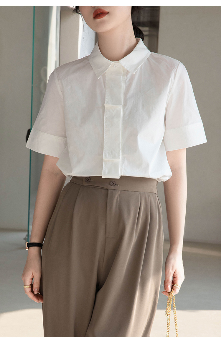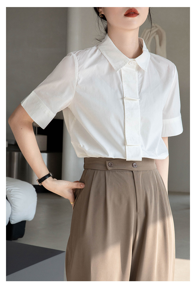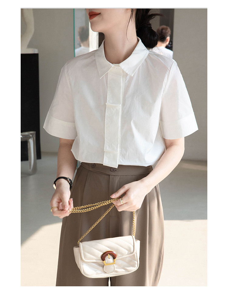NVYIS 화이트 셔츠 여성의 디자인 감각 틈새 2023 짧은 소매 복고풍 느슨한 서양 스타일 유행 우아한 셔츠