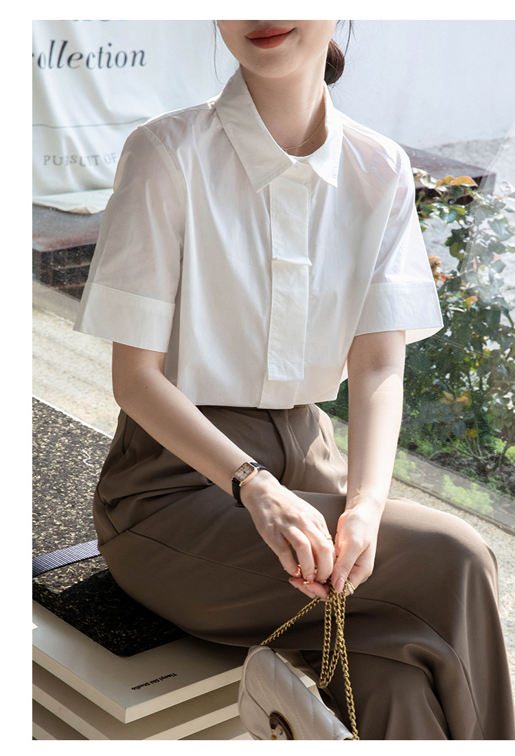 NVYIS 화이트 셔츠 여성의 디자인 감각 틈새 2023 짧은 소매 복고풍 느슨한 서양 스타일 유행 우아한 셔츠스토어 가기