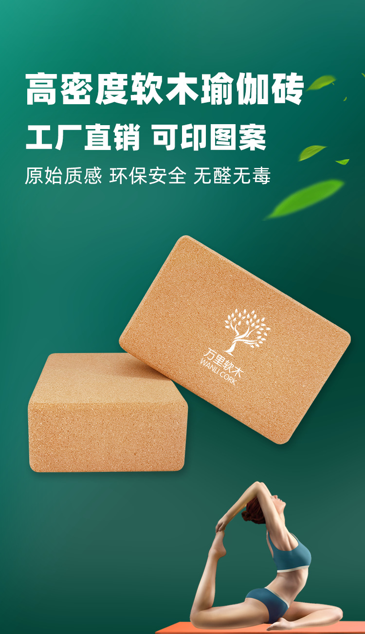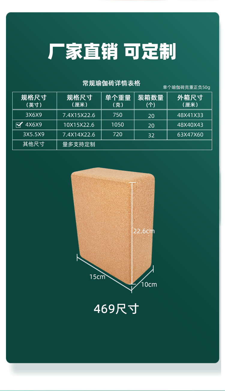 코르크 요가 벽돌 고밀도 469 인치 요가 코르크 벽돌 인쇄 가능한 로고 댄스 벽돌