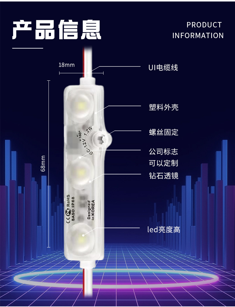 광고 조명 도매 led6818 모듈 광고 발광 문자 광원 LED 사출 렌즈 모듈스토어 가기
