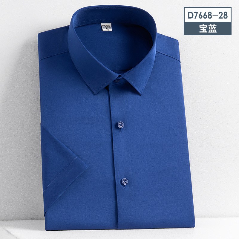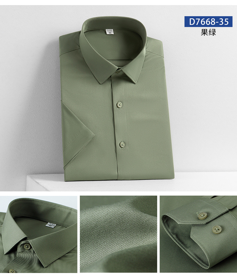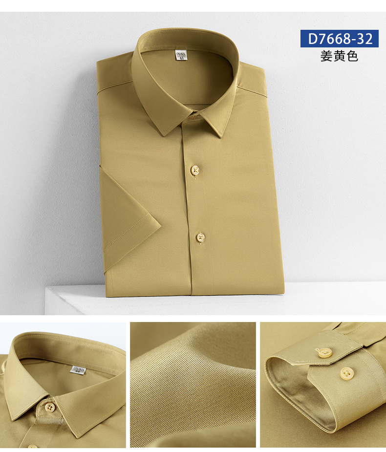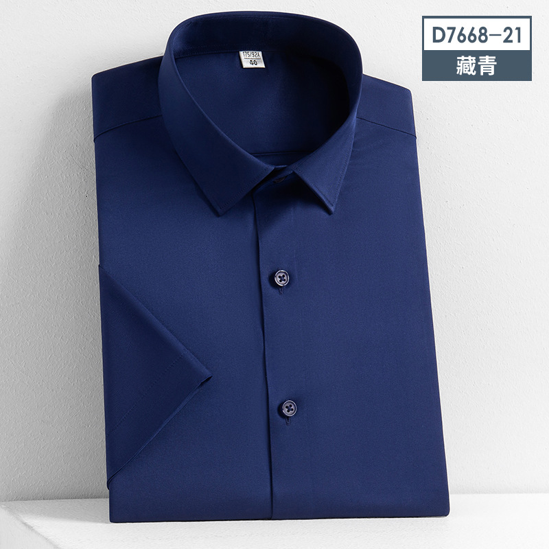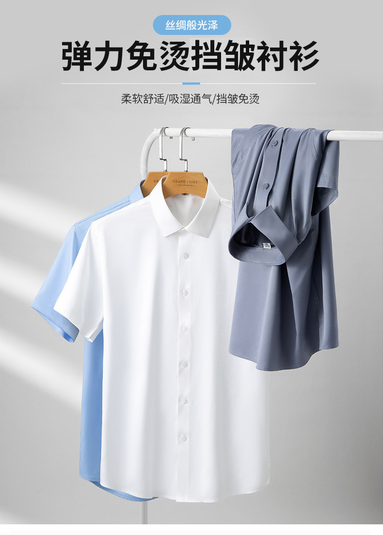 새로운 모조 실크 비 철 반팔 셔츠 단색 스트레치 셔츠 반 소매 남성 최고 제조 업체 재고 도매스토어 가기