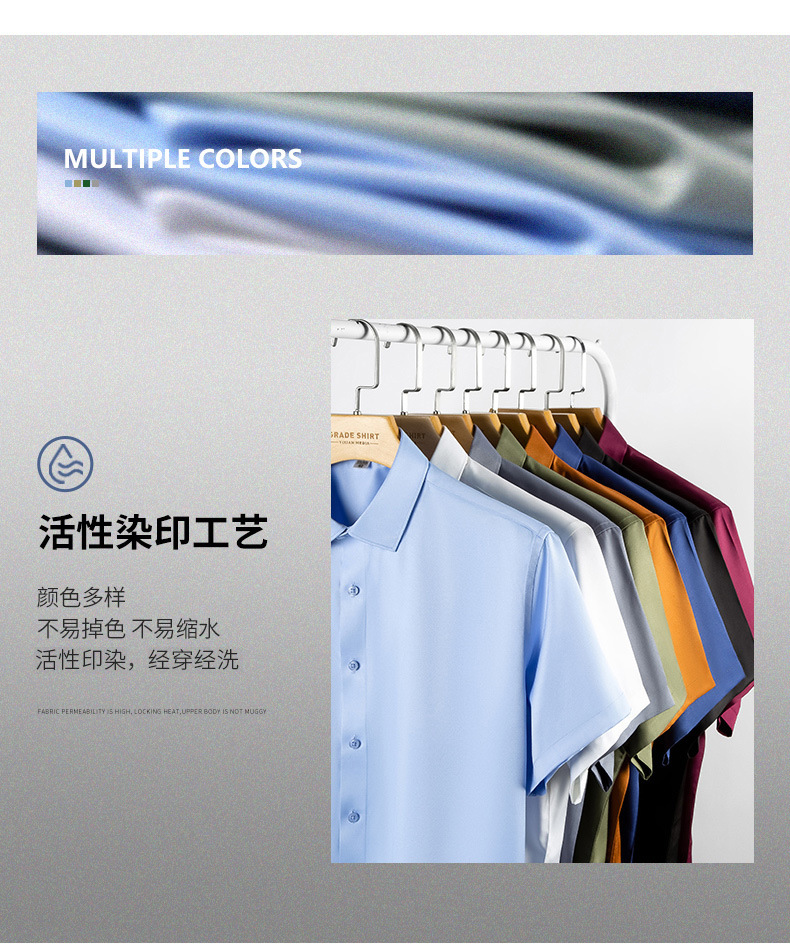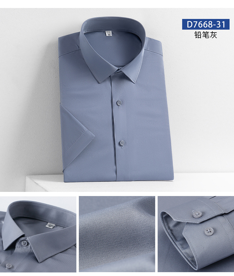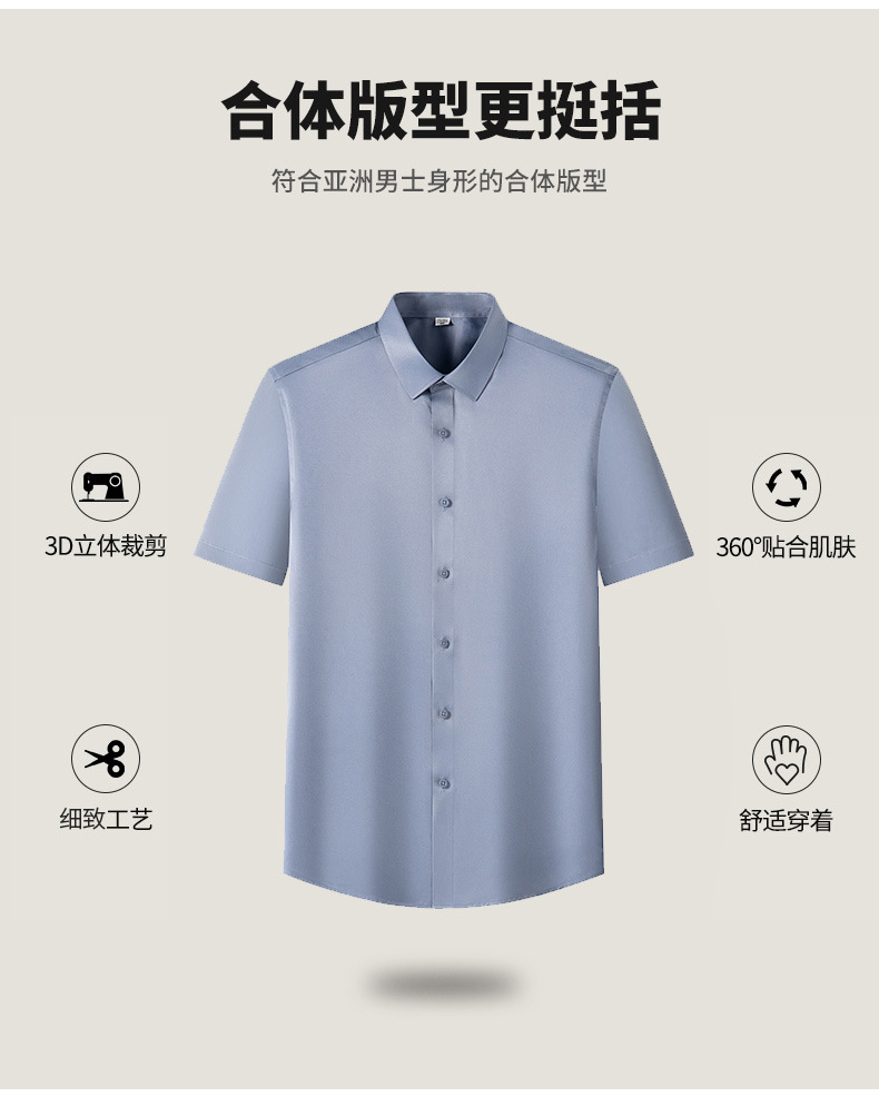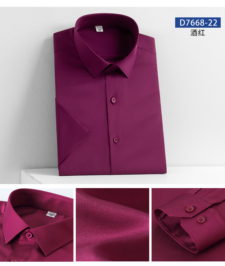새로운 모조 실크 비 철 반팔 셔츠 단색 스트레치 셔츠 반 소매 남성 최고 제조 업체 재고 도매스토어 가기