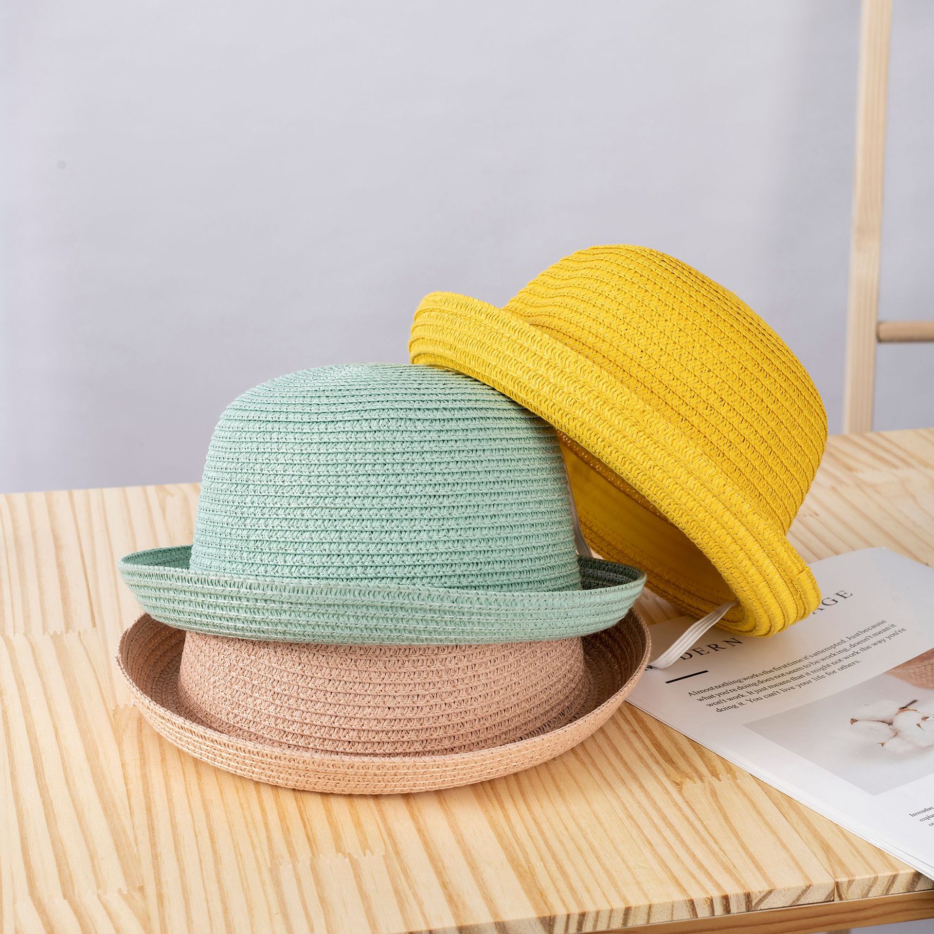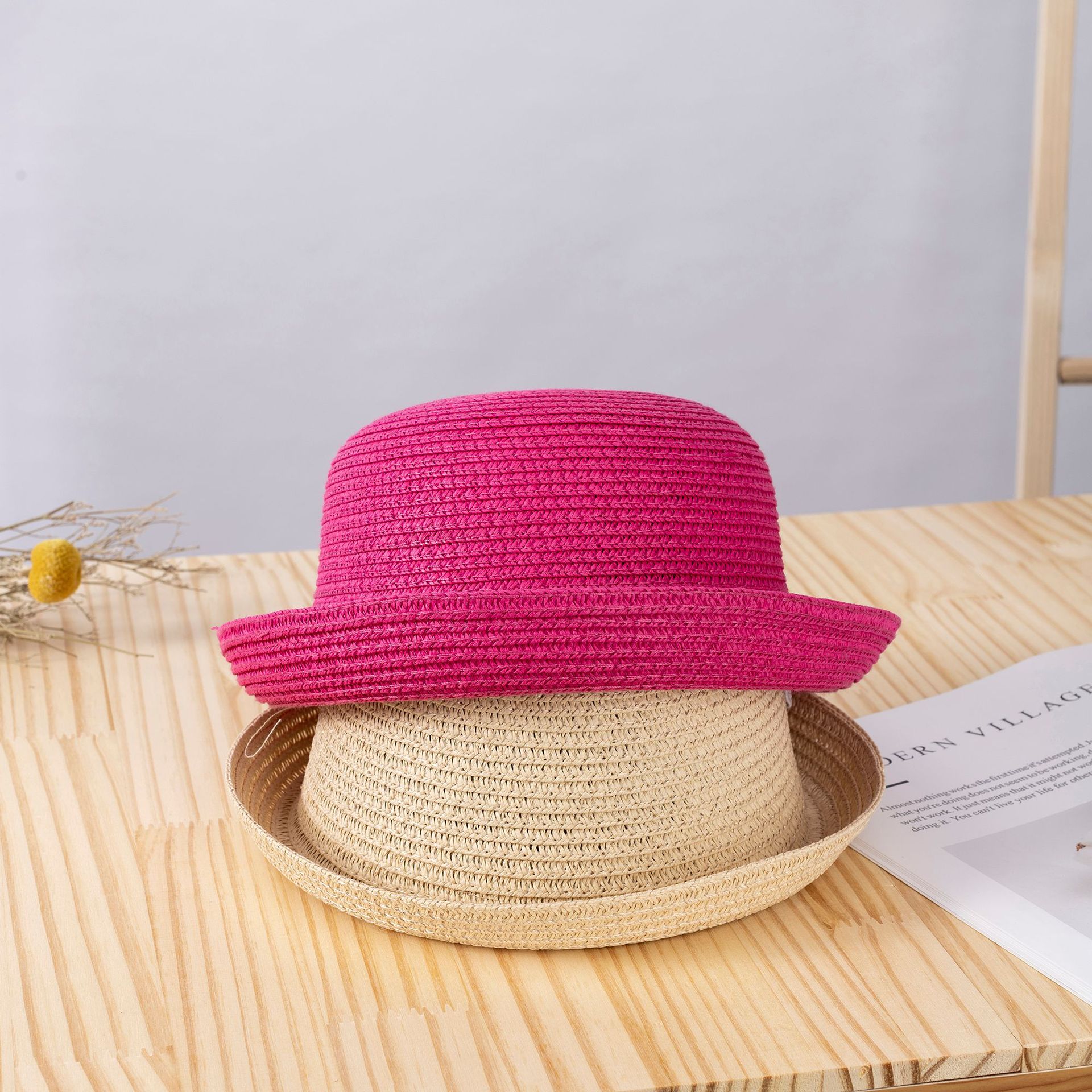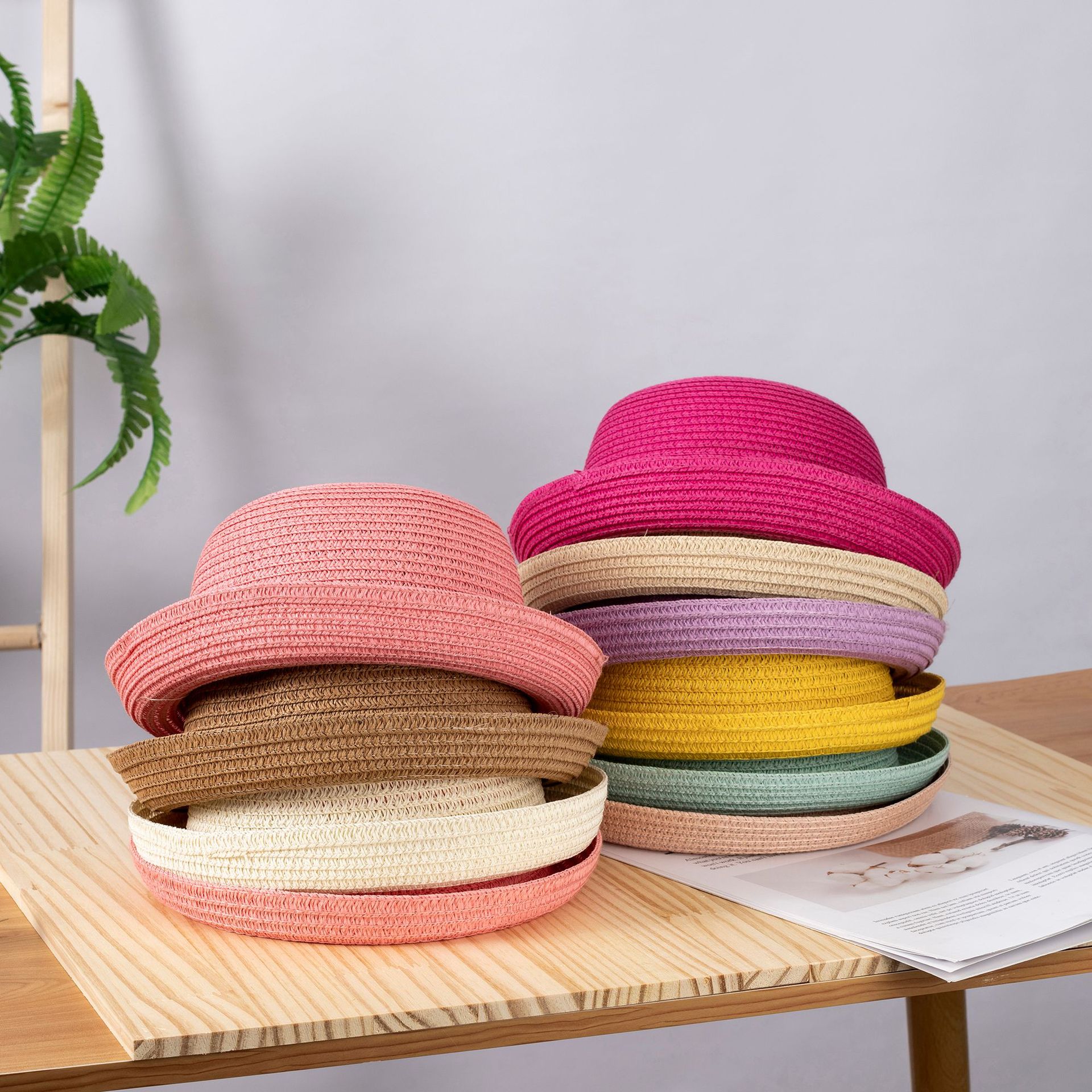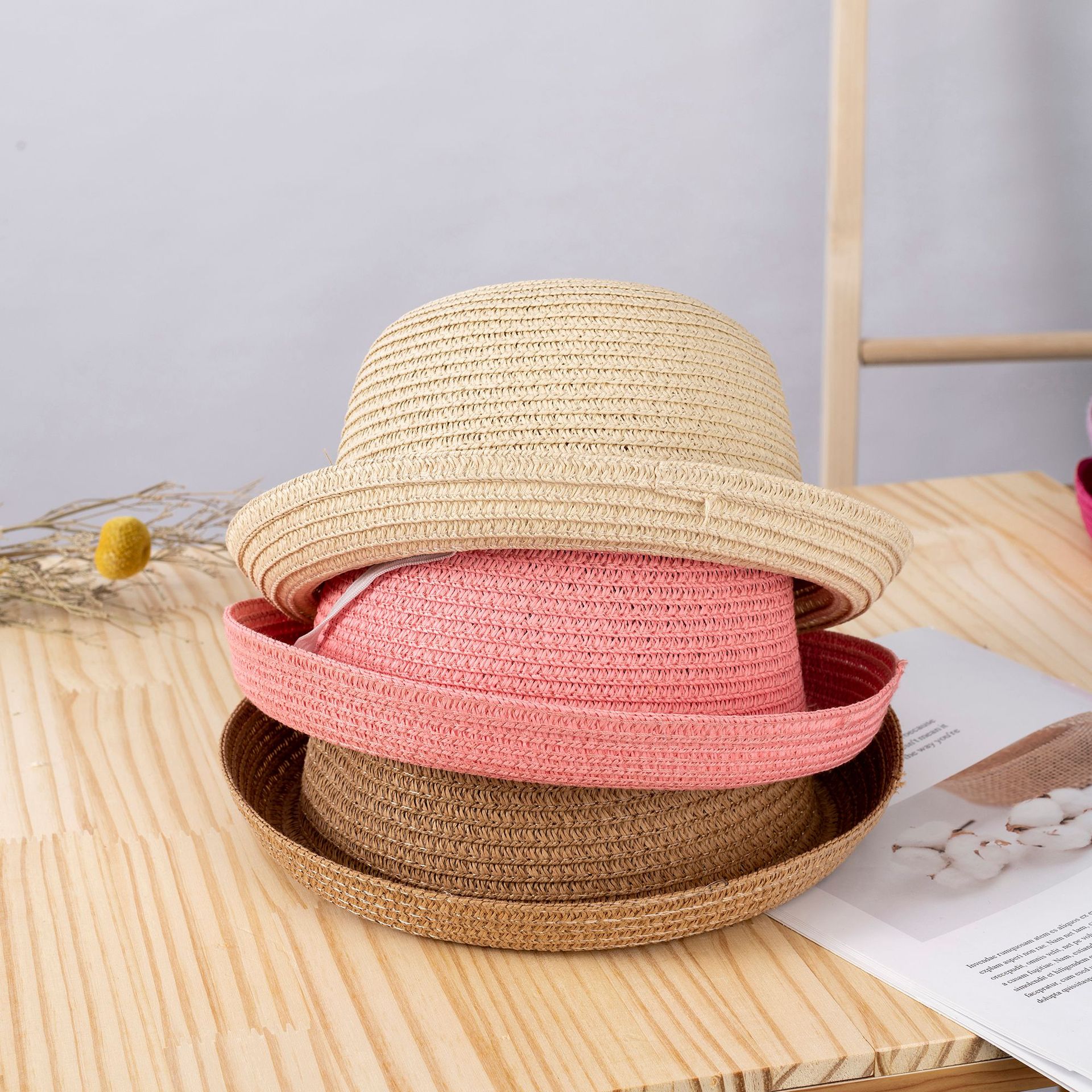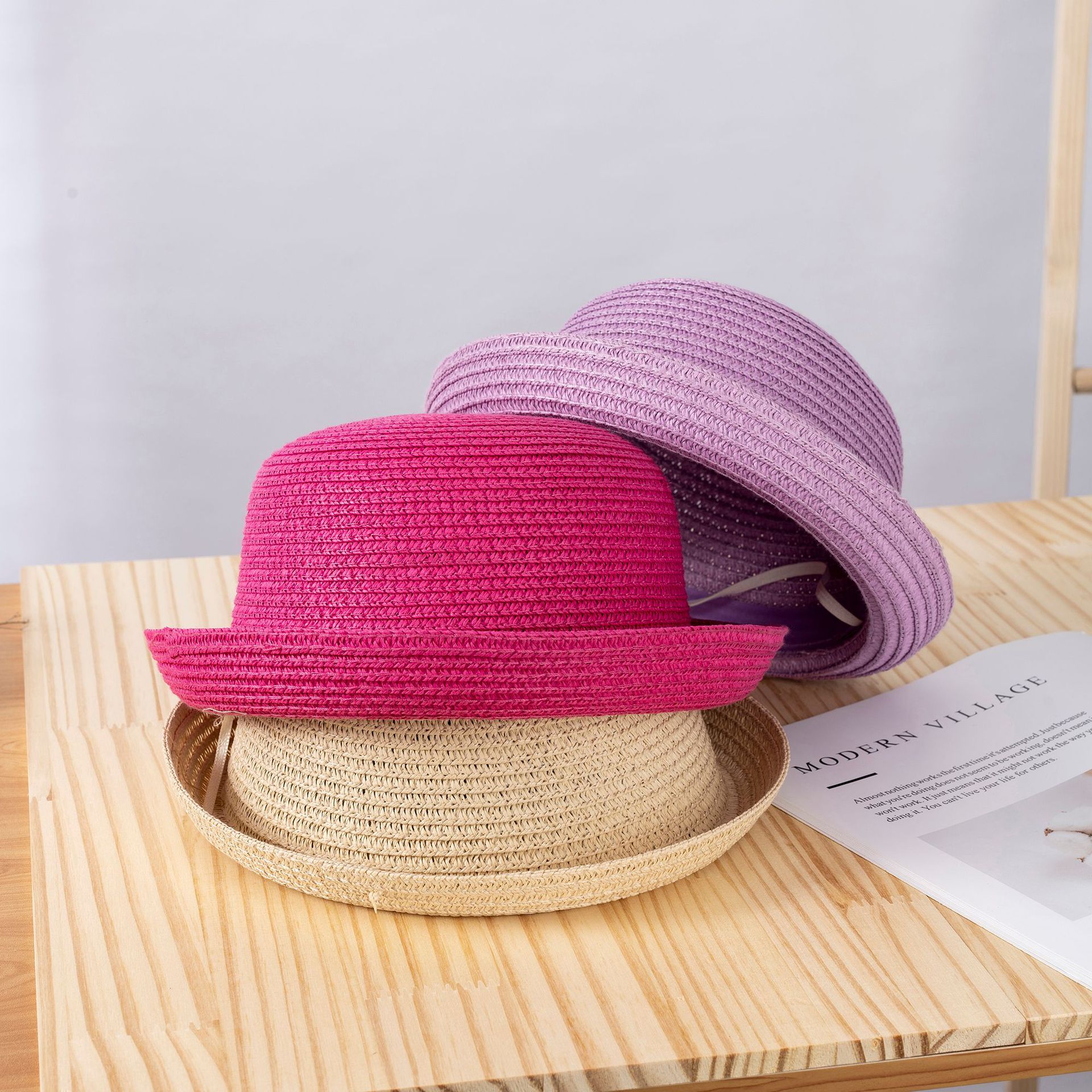 여름 롤업 챙 밀짚모자 부모-자녀용 단색 어린이용 햇빛 가리개 자외선 차단 DIY 무지 밀짚모자스토어 가기