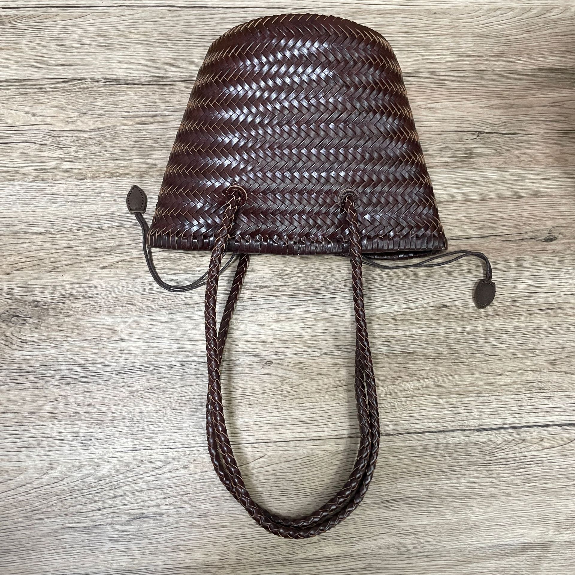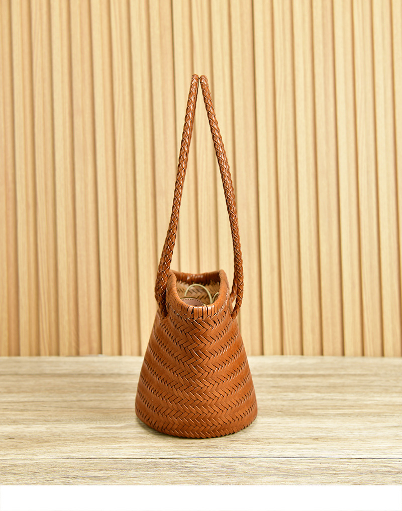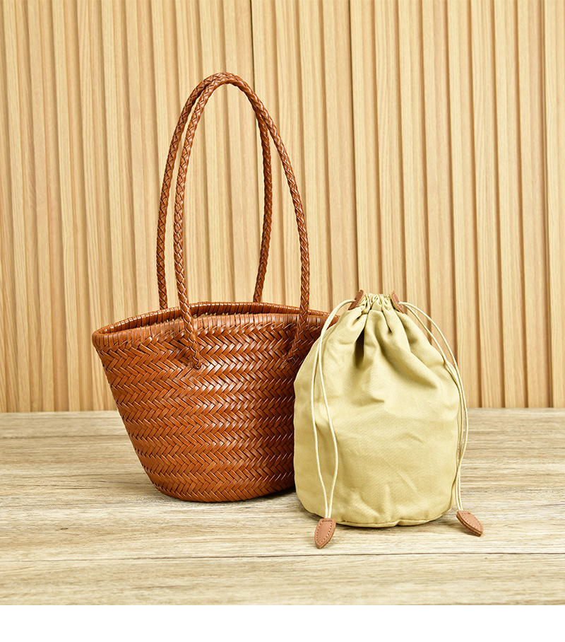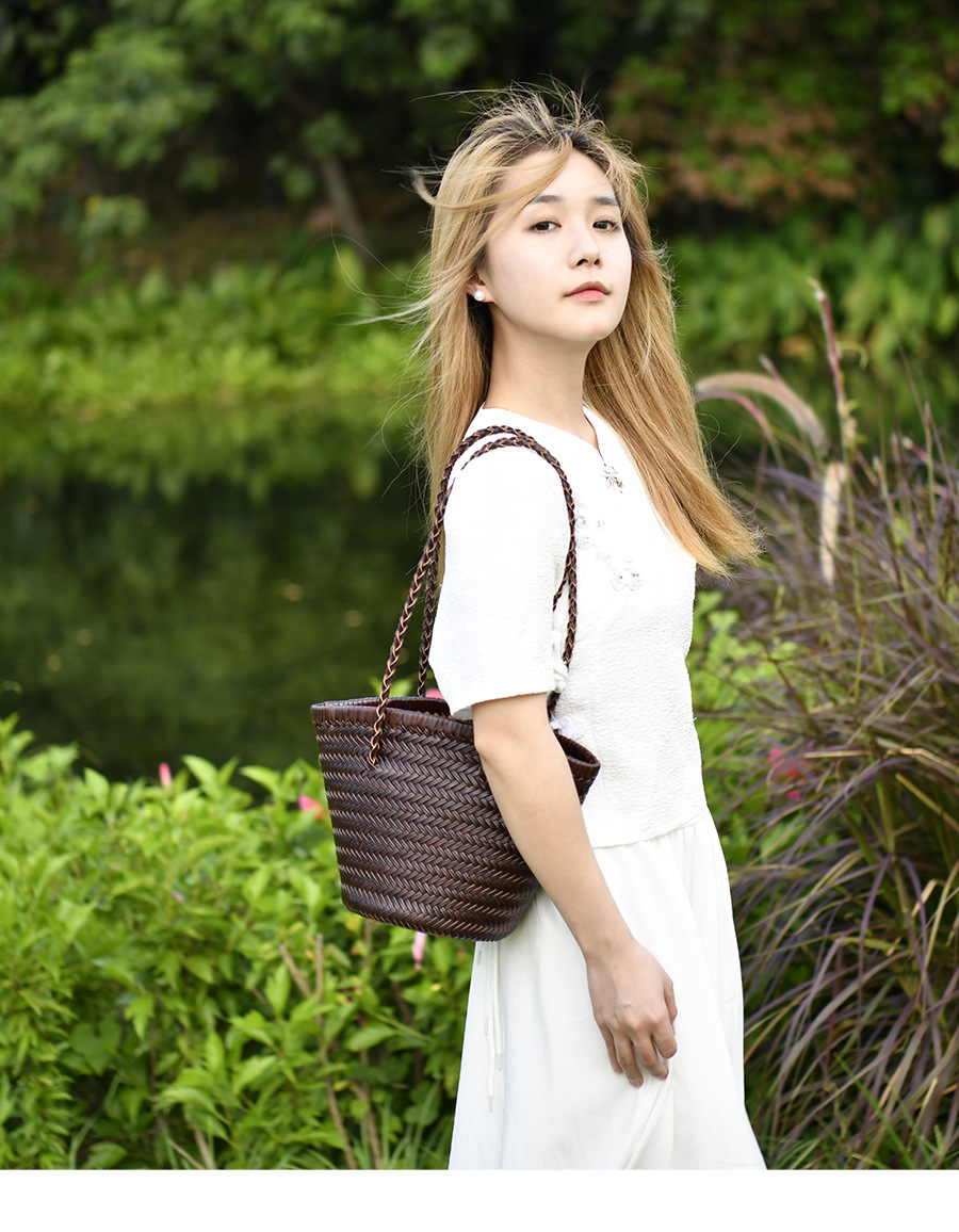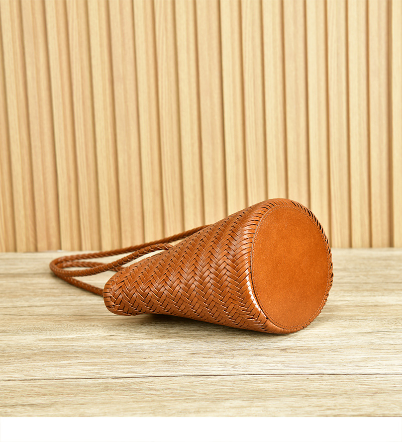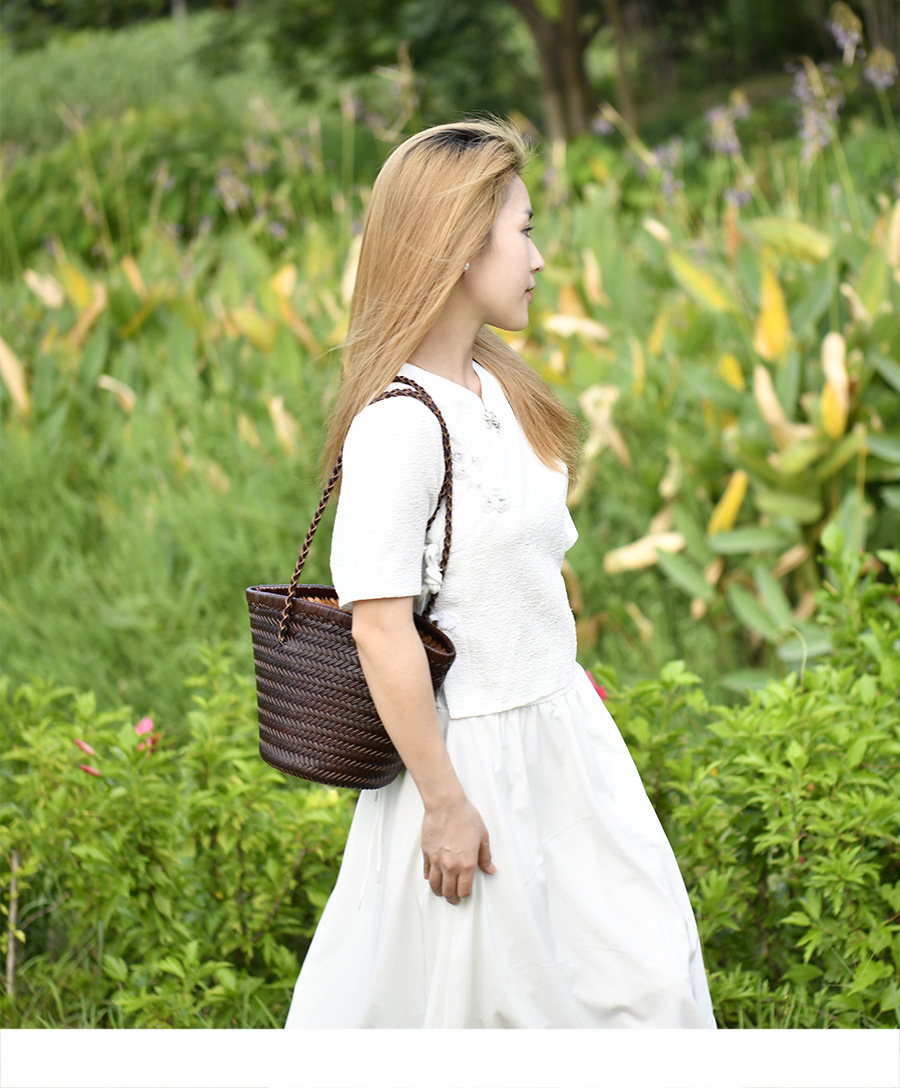 Z 홈 같은 스타일 짠 가방 새로운 정품 가죽 야채 바구니 숄더 백 레트로 순수 수제 버킷 백 뜨거운 판매