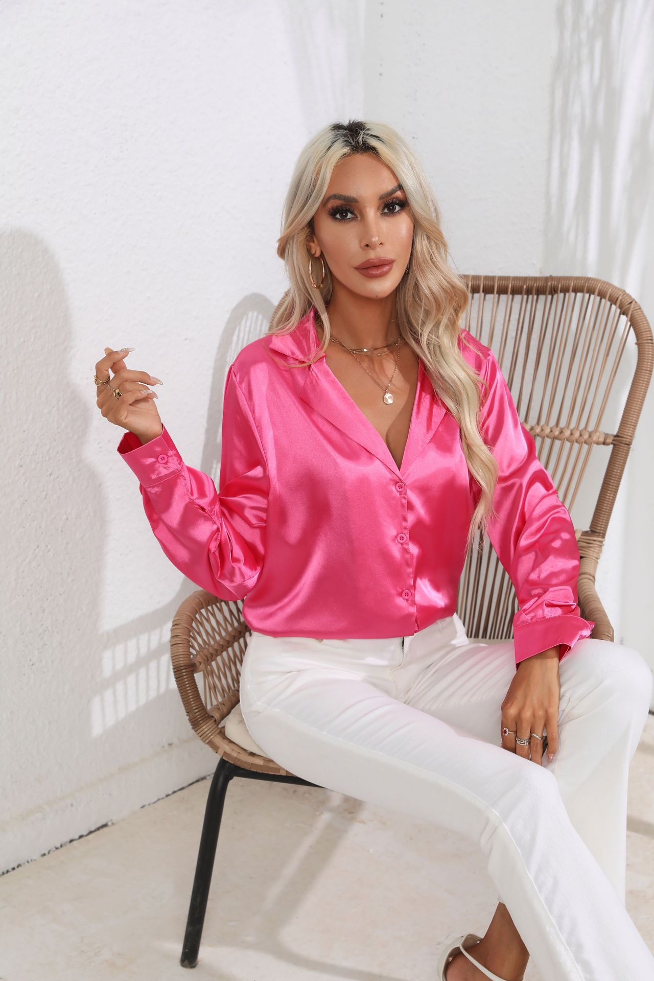 폭발 리얼 세트 칼라 새틴 셔츠 여성용 새틴 실크 긴팔 셔츠 새로운 유럽과 미국의 크로스 보더 여성 의류스토어 가기