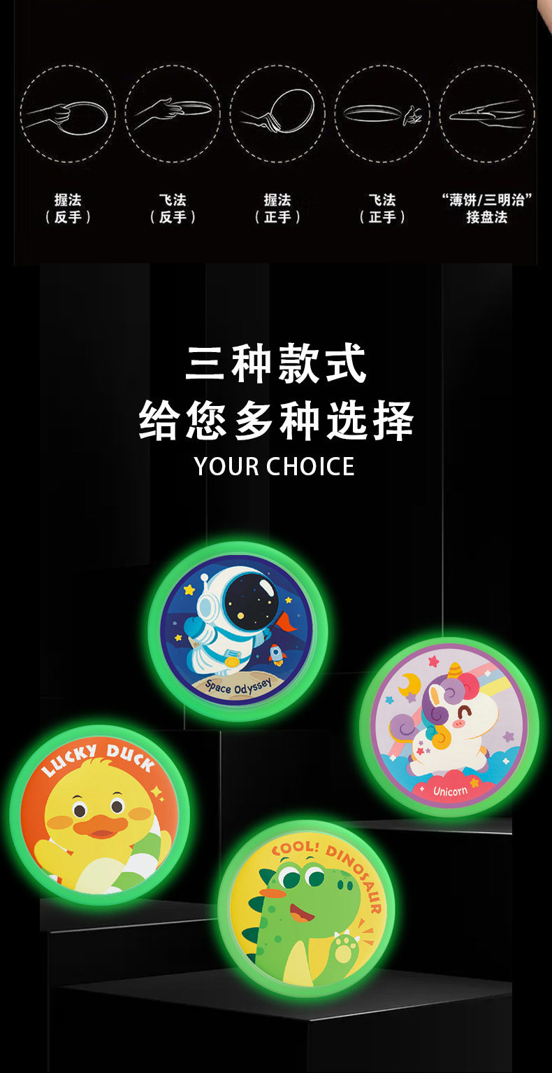야광 플라잉 디스크 야외 어린이용 부드럽고 회전 가능한 전문 스포츠급 극한 발광 팀워크 부모-자녀 활동용 비행 장난감스토어 가기