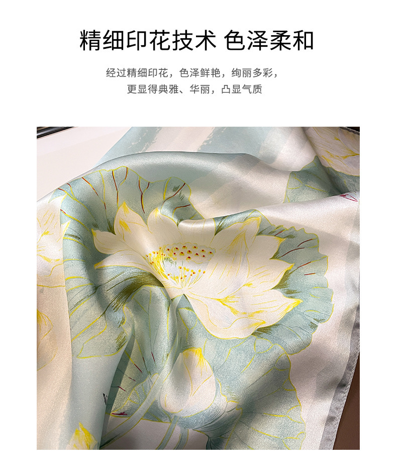 봄과 여름 경량 중국 스타일 로터스 53 뽕나무 실크 스카프 여성용 작은 사각 스카프 넥타이 가방 장식