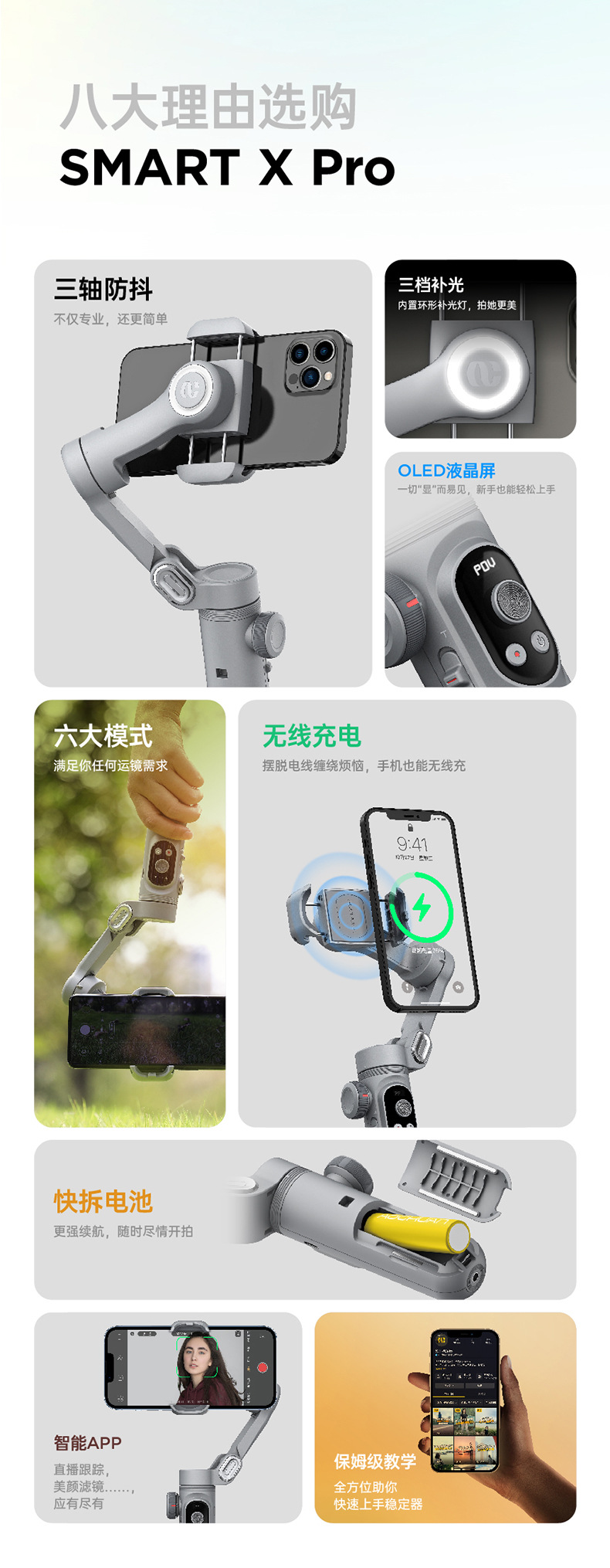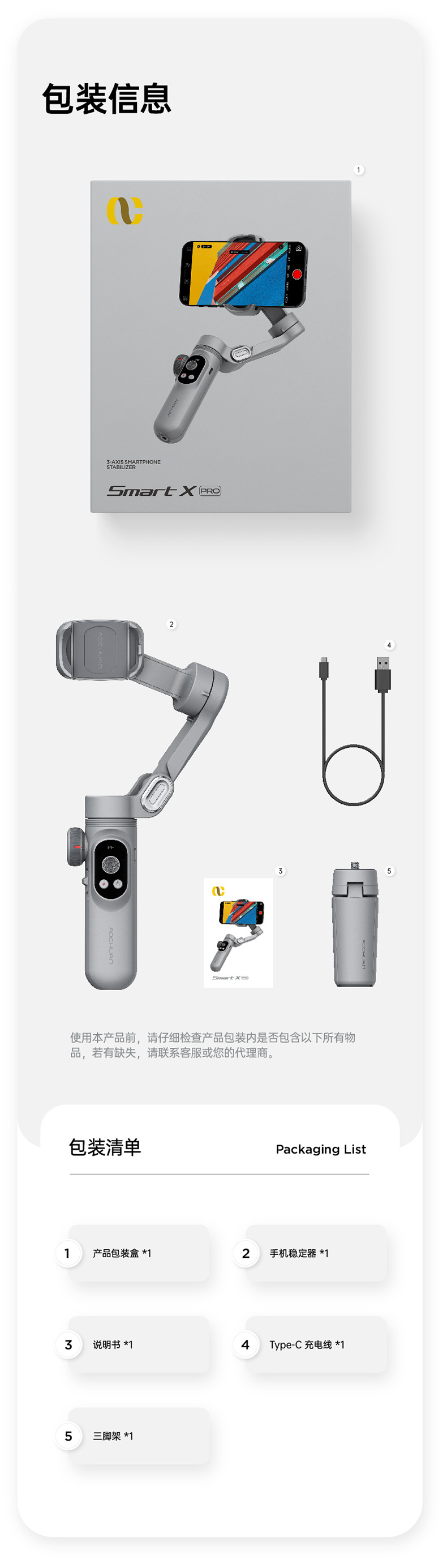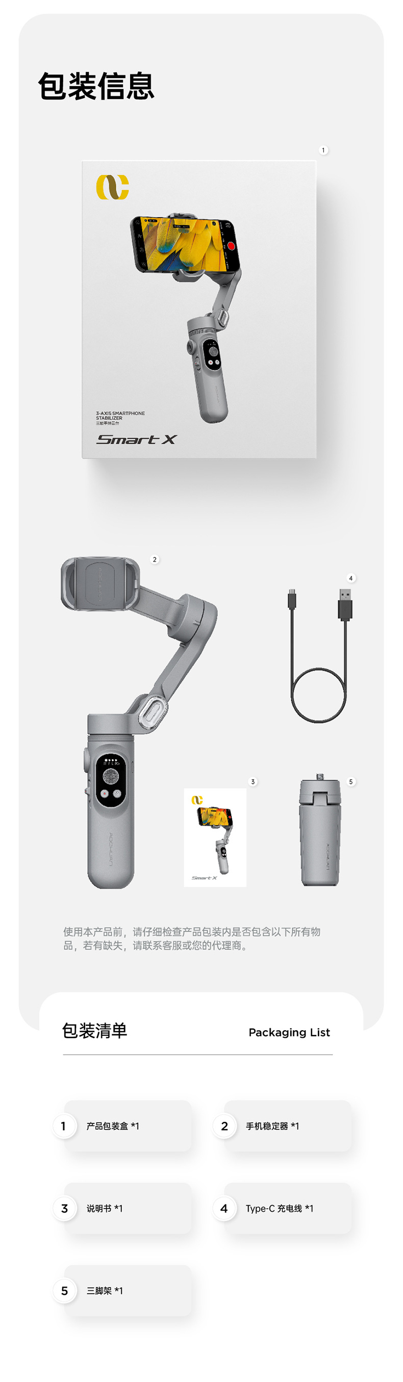 • [오리지널 정품 Aochuan 스마트 X] 표준 + 0.73 m 연장봉 + 18cm 삼각대