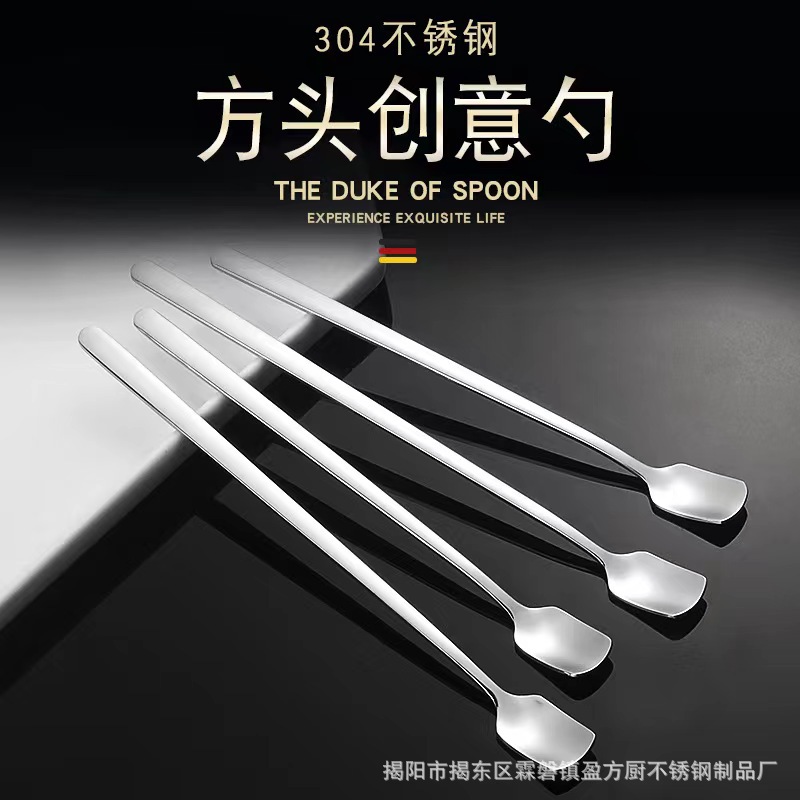 304 스테인레스 스틸 사각 헤드 스푼 긴 손잡이 디저트 아이스크림 아이스크림 스푼 밀크 티 조미료 믹싱 스푼 작은 스푼 헤드 커피 스푼