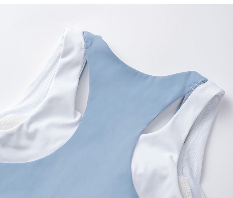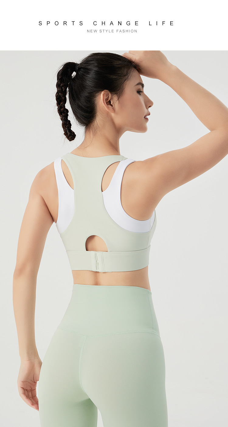 스포츠 속옷 여자의 실행 충격 방지 색상 매칭 가짜 투피스 플러스 사이즈 요가 조끼 칼라 액세서리 우유 피트니스 브래지어
