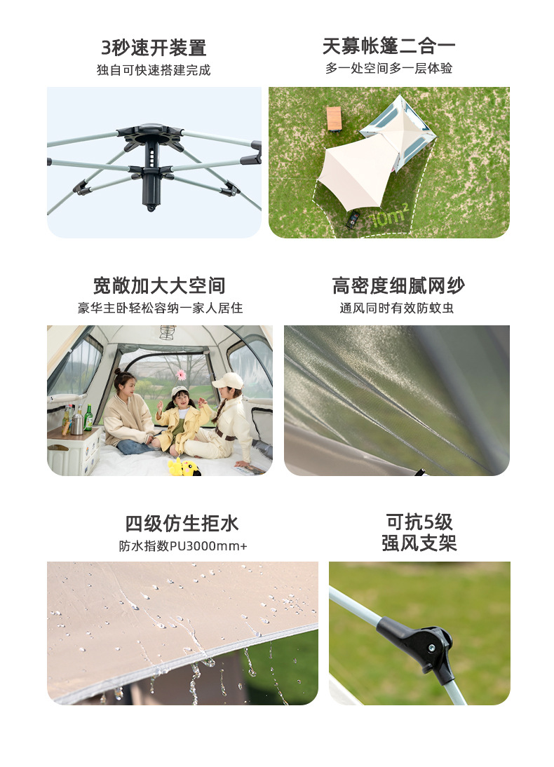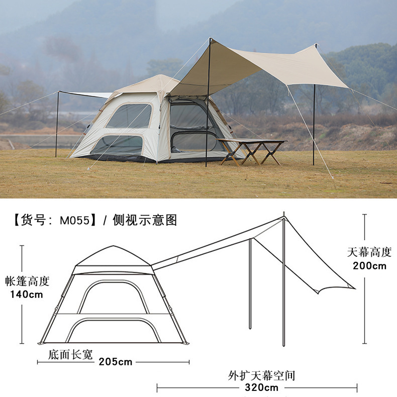 야외 통합 캠핑 캐노피 텐트 휴대용 접이식 두꺼운 방수, 방풍 및 자외선 차단제 실버 코팅 캠핑 자동스토어 가기