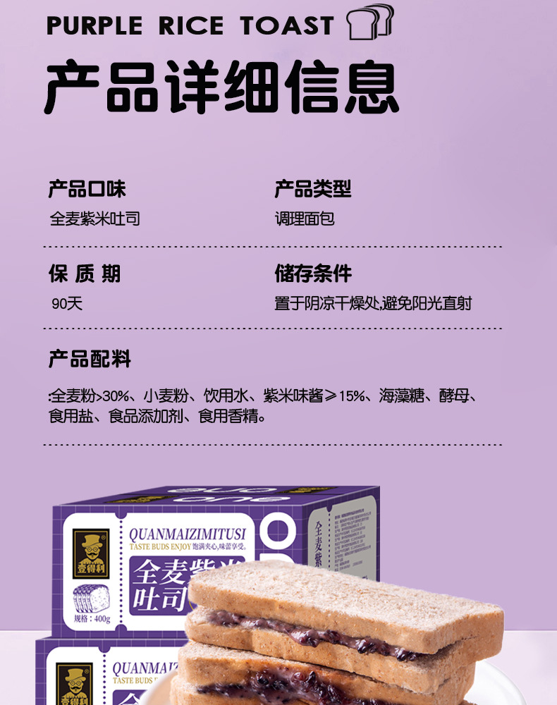 • 통밀 보라색 밥 토스트 [8 팩] * 3 박스
