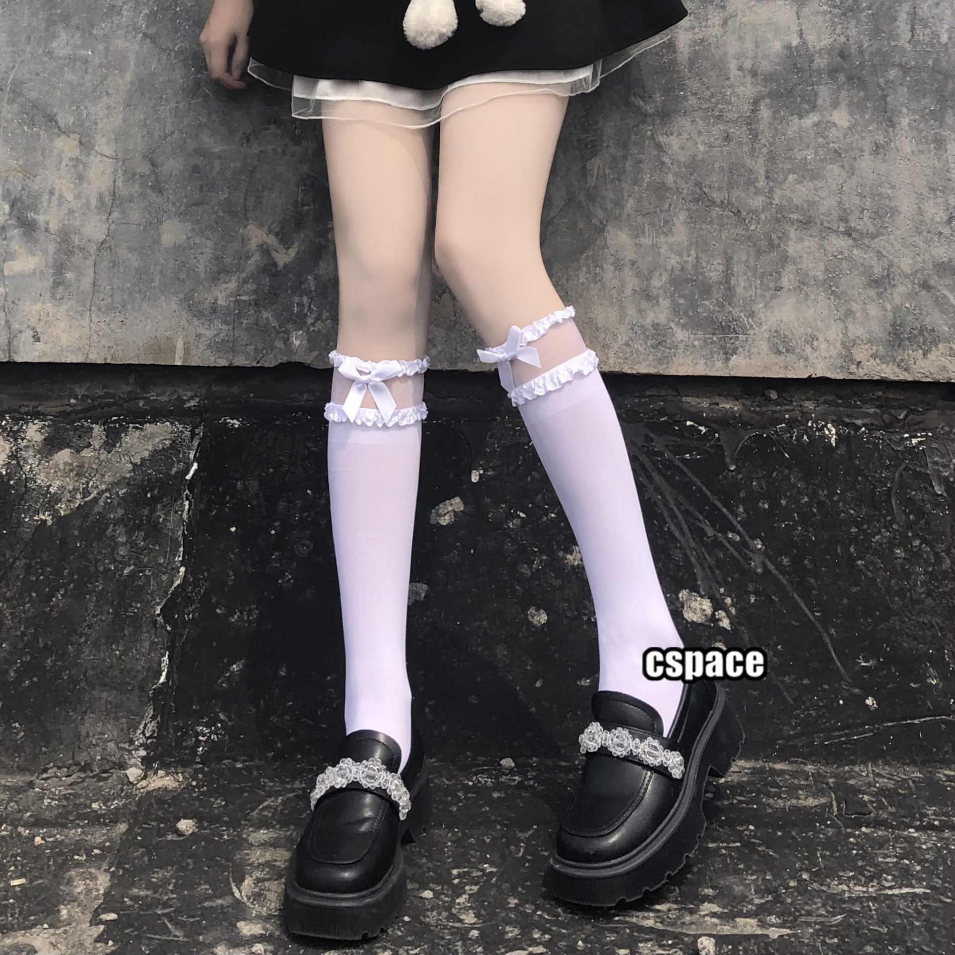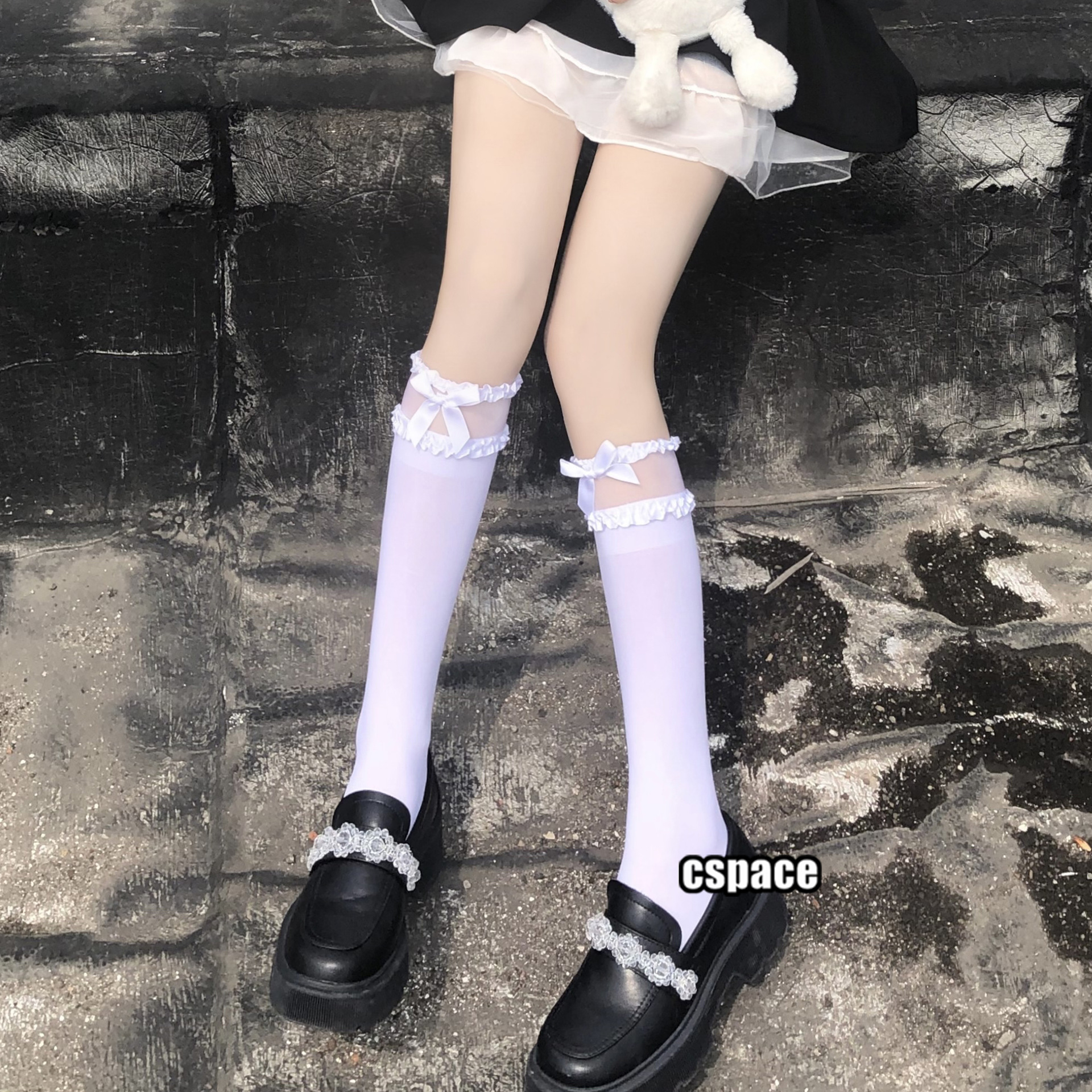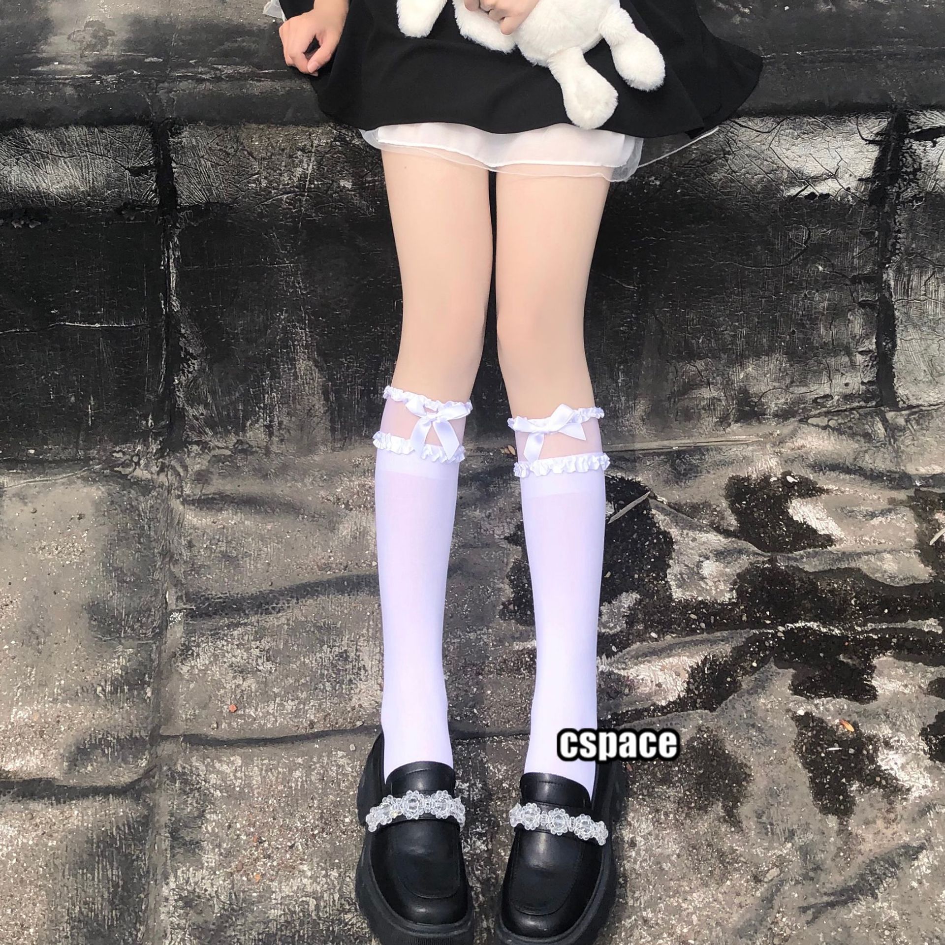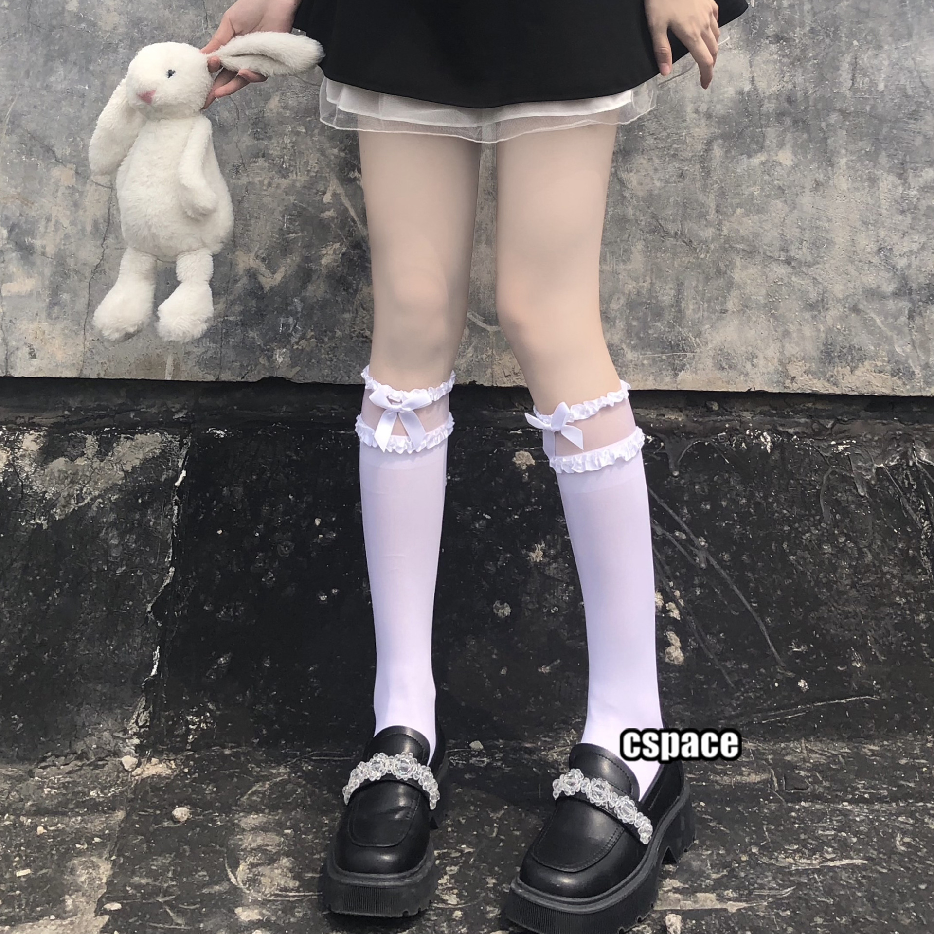 Jk 송아지 양말 로리타 레이스 중간 길이 양말 여성용 여름 얇은 활 로리타 귀여운 반 양말 슬리밍스토어 가기