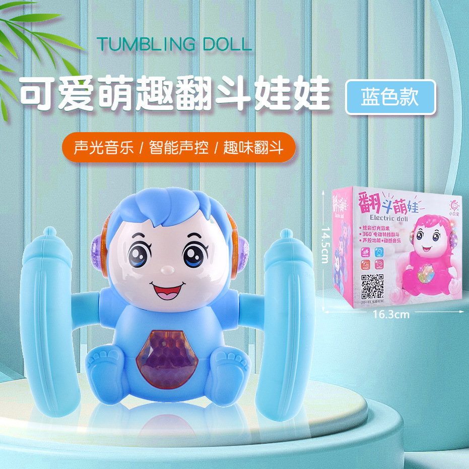 전기 스턴트 팁 인형 음성 활성화 유도 롤링 원숭이 소리와 가벼운 공중제비 작은 원숭이 교육 어린이 장난감 도매스토어 가기
