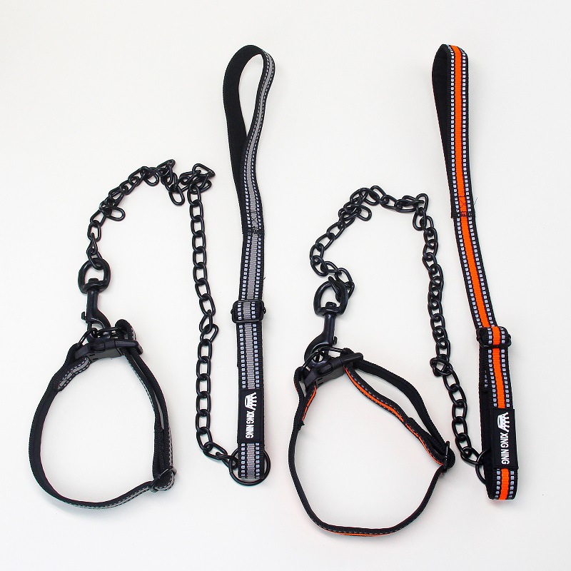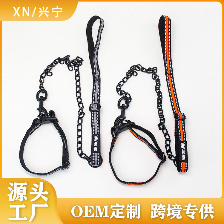 공장 개 체인 물림 방지 반사 개 견인 로프 철 체인 로프 철 고리 볼트 개 산책 로프 애완 동물 용품스토어 가기