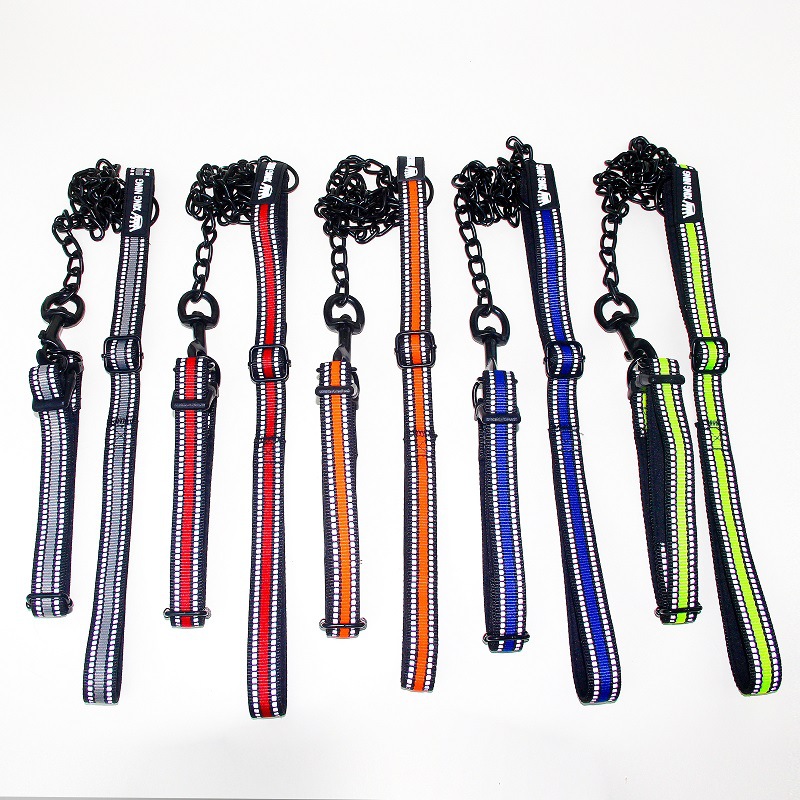 공장 개 체인 물림 방지 반사 개 견인 로프 철 체인 로프 철 고리 볼트 개 산책 로프 애완 동물 용품